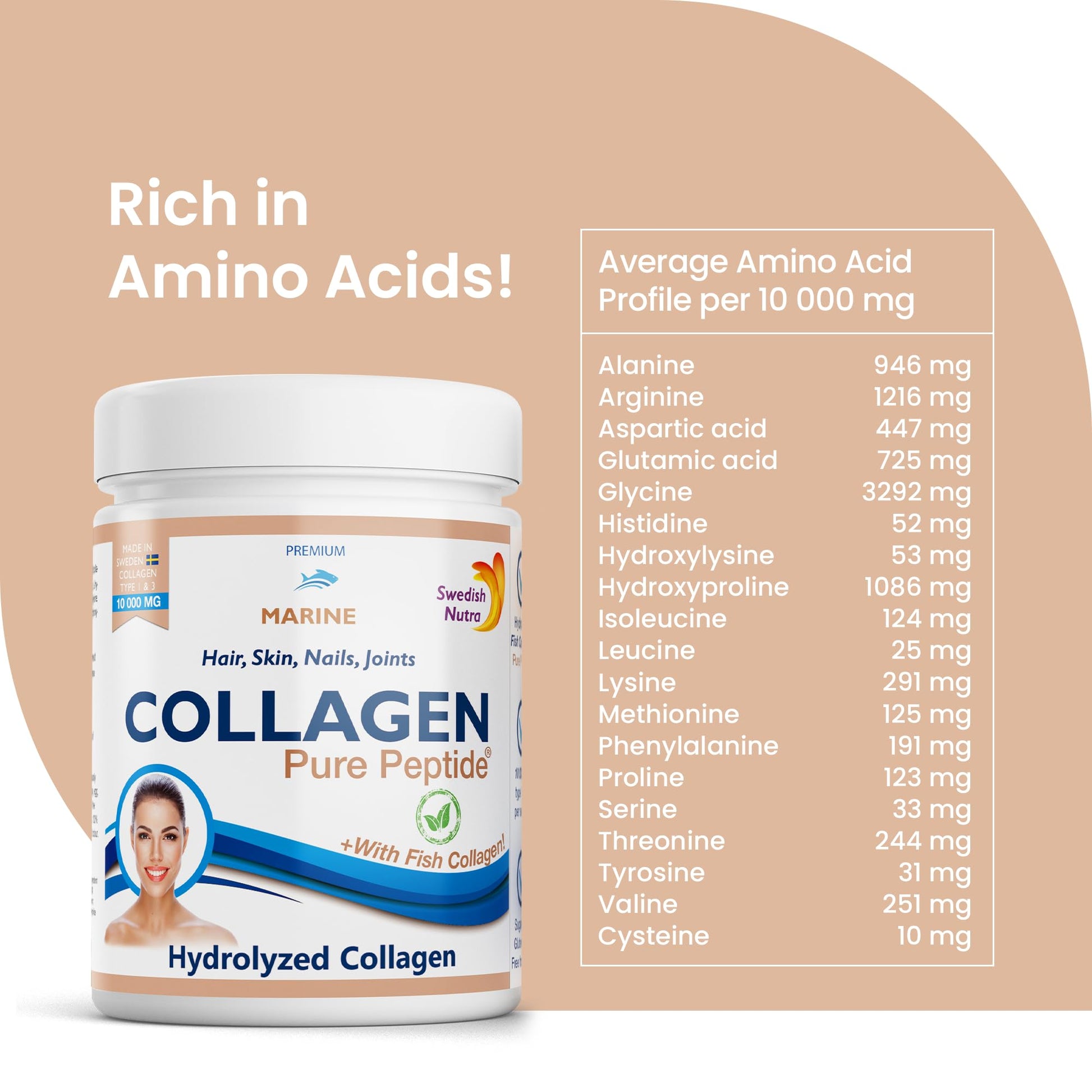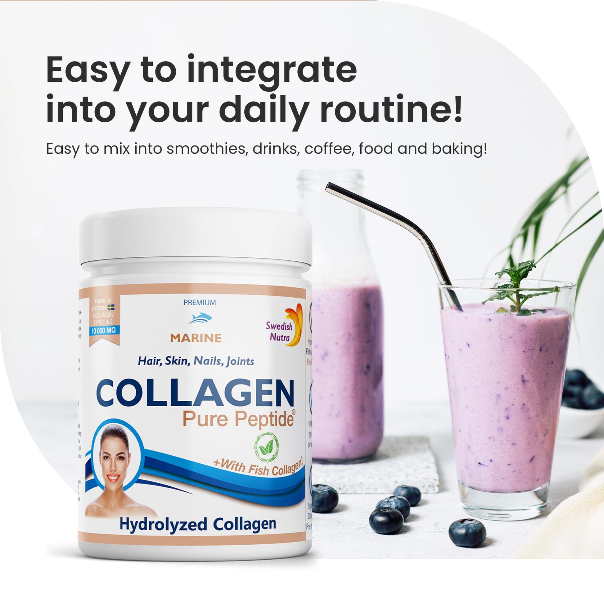 Swedish Nutra Powder Marine Collagen - Pack of 300g, 30 Day Supply | Minimize Fine Lines, Wrinkles & Improve Skin Elasticity | High Absorption Rate