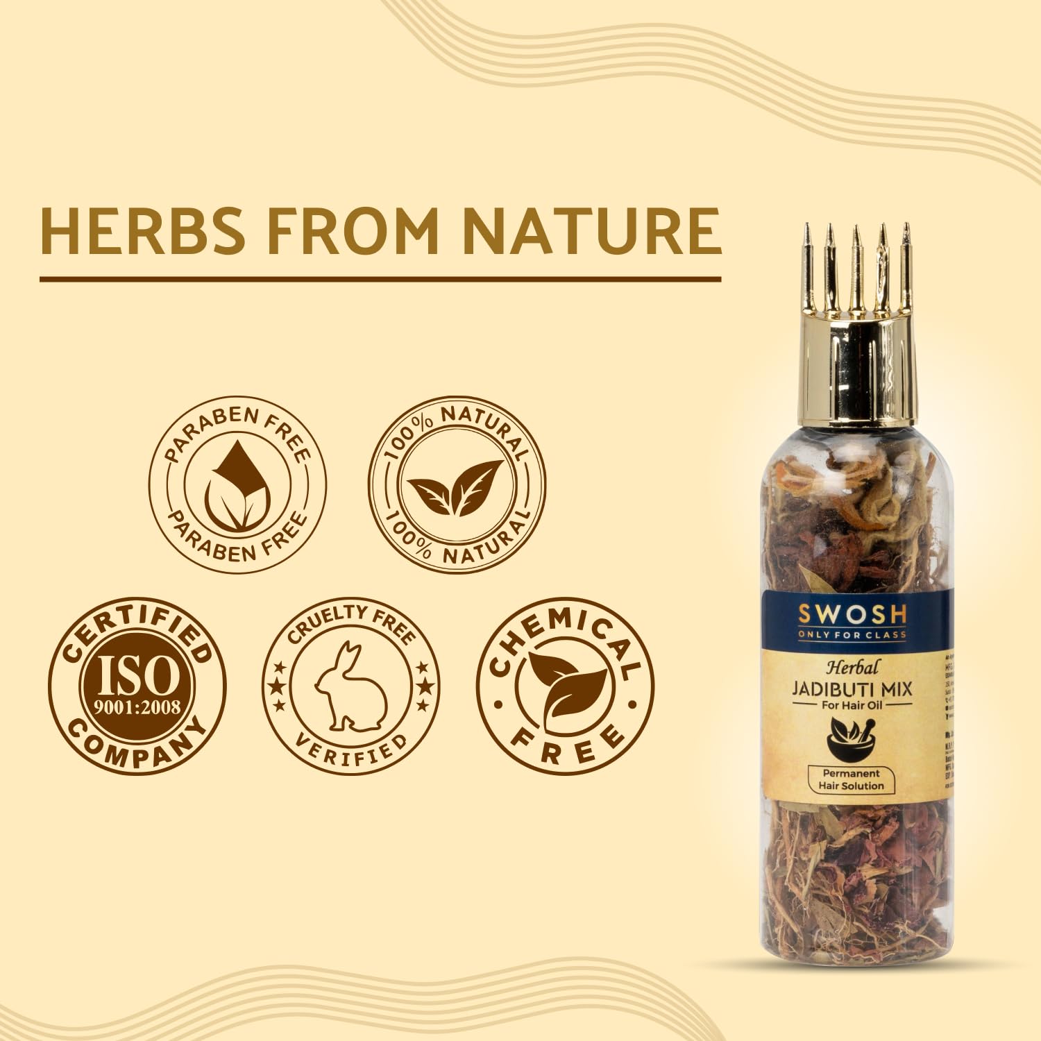 SWOSH Ayurvedic Herbs and Herbal Dry Jadibutti Mixture For Hair Oil Infusion 10 gram(0.35 oz) Bottle With Comb Applicator