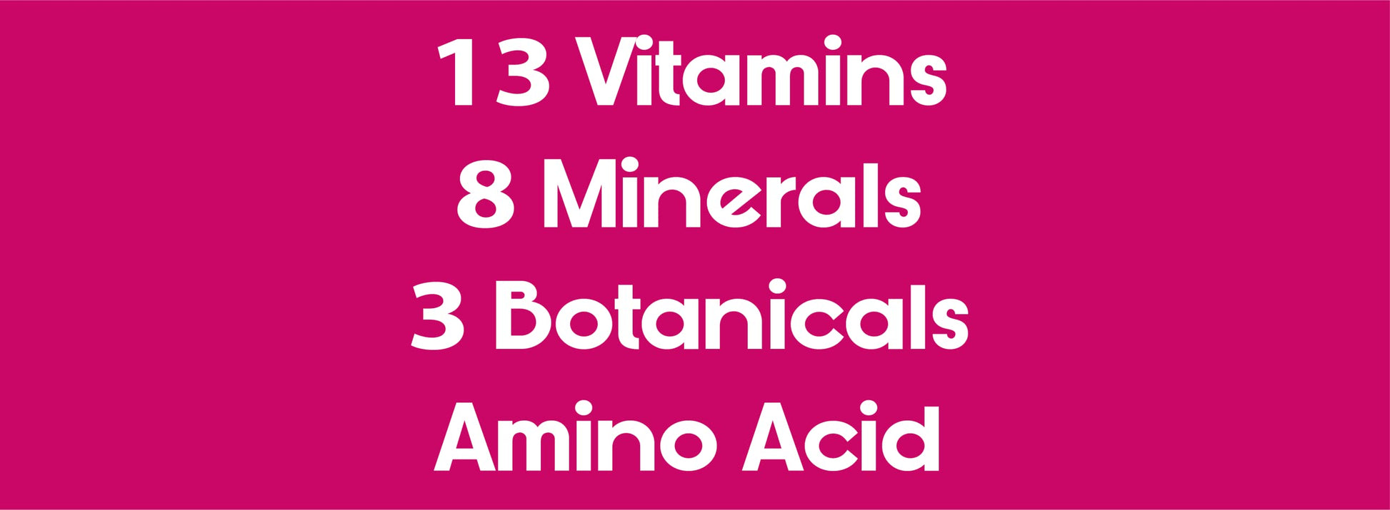 A complete daily A-Z multivitamin formulated for your wellbeing. The combination of key vitamins and minerals meets a special balance of nutrients to support your health, wellbeing and vitality. A pack of 60 caplets. Vitamin A contributes to the maintenance of normal skin, mucous membranes and normal vision. Vitamin B1 contributes to normal function of the heart and psychological function. Vitamin B2 and B3 contribute to normal function of the nervous system. Vitamin B6 and B12 contribute to the reduction of tiredness and fatigue. Vitamin C contributes to normal collagen formation for the normal function of bones and cartilage. Vitamin D contributes to the immune function, muscle function and maintenance of teeth and bones. Vitamin E contributes to the protection of cells from oxidative stress. Folate has a role in the process of cell division. Iodine contributes to normal cognitive function. Iron contributes to the normal function of red blood cells and haemoglobin. Magnesium contributes to normal energy-yeilding metabolism. Zinc contributes to normal fertility and reproduction and maintenance of normal hair, nails Manufactured and Quantified in the United Kingdom. DIRECTIONS FOR USE: Adults: Take one caplets daily or as advised by a healthcare professional. Take caplet with water after food for maximum absorption. Do not chew. Do not exceed the recommended intake. As with all food supplements seek professional advice before using if you are pregnant, breastfeeding or suffer from food allergies. Food supplements should not be used as a substitute for a balanced and varied diet and an active and healthy lifestyle.More Info