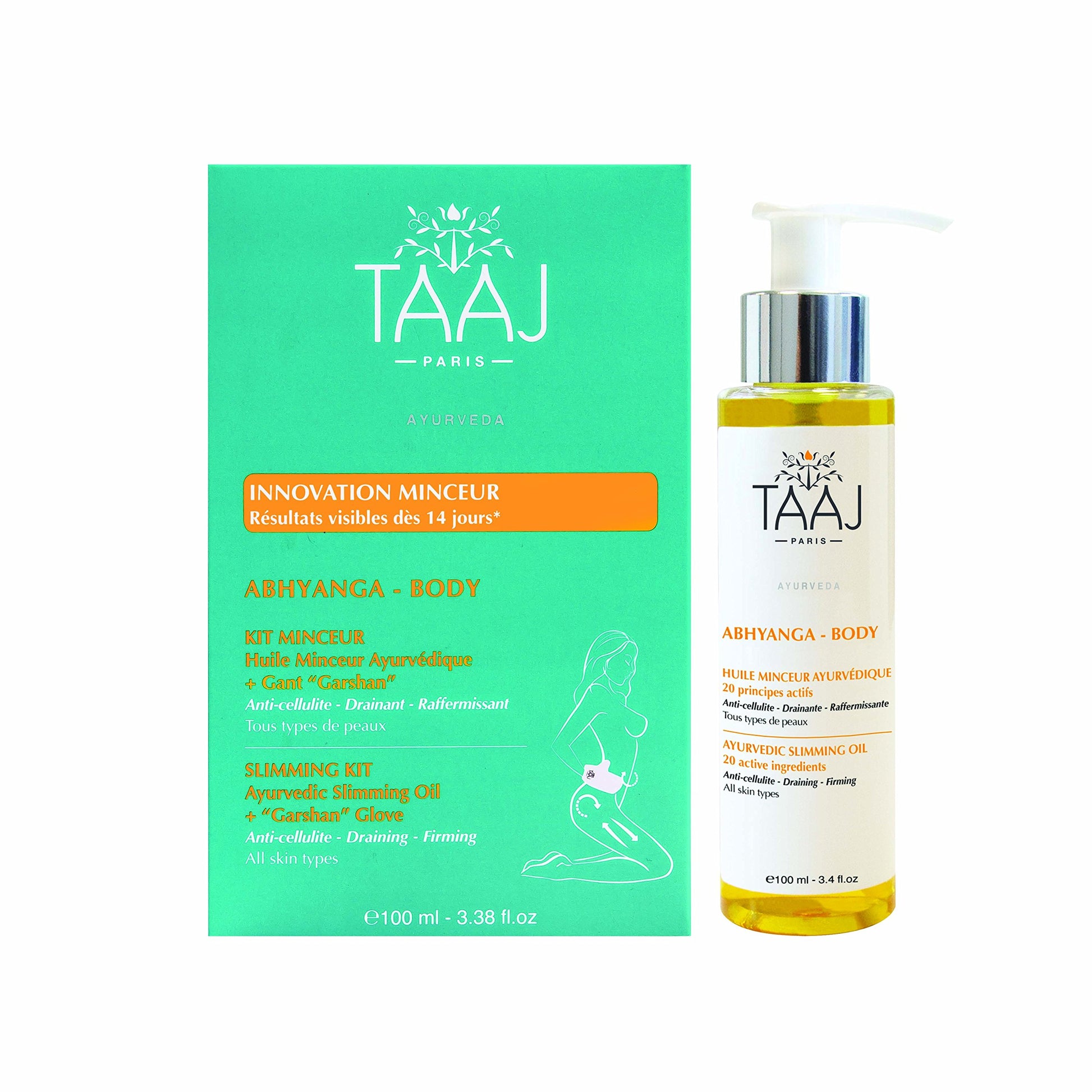 Taaj Abhyanga Slimming Kit Ayurvedic Slimming Oil 100ml + Garshan Glove