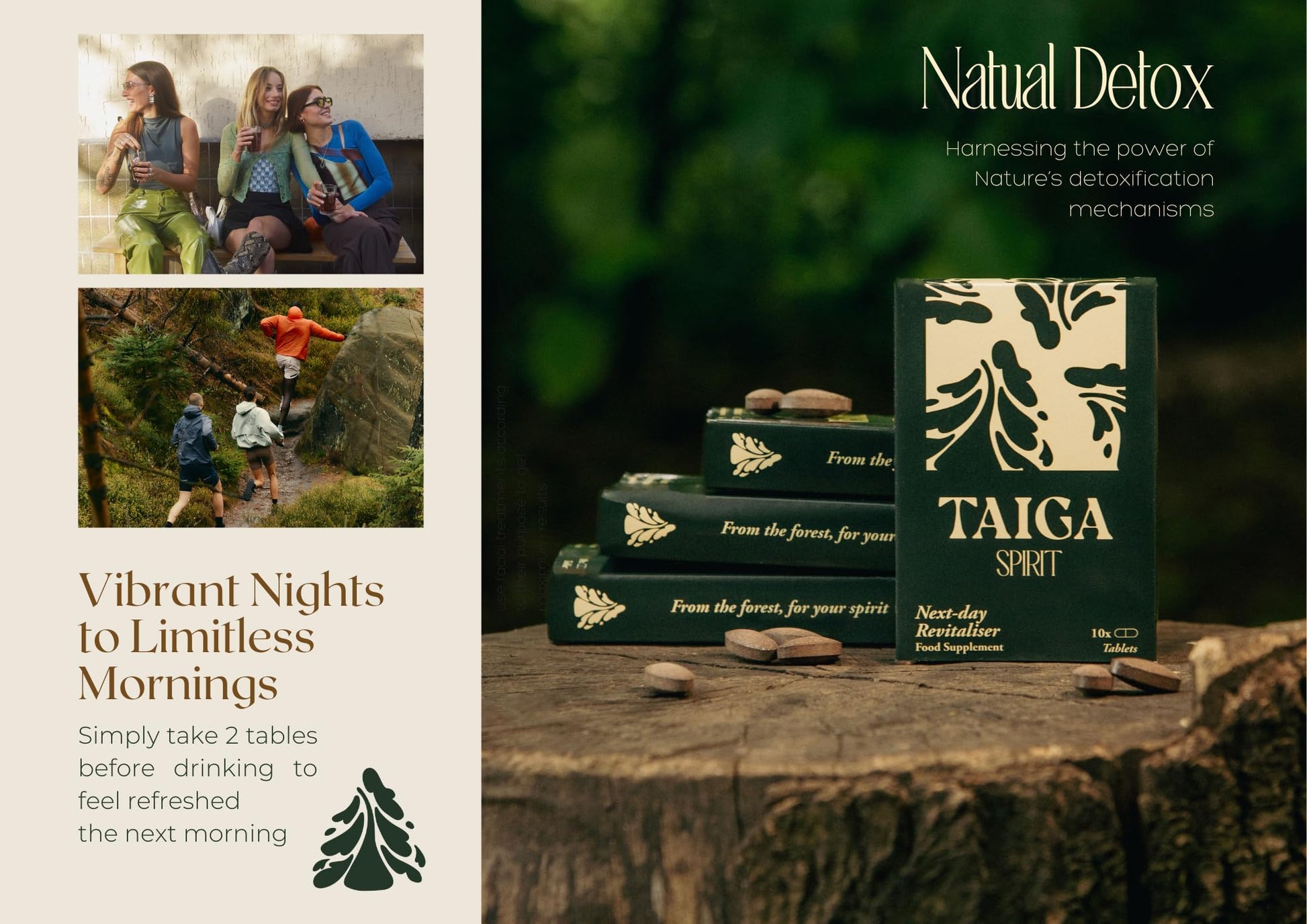 Taiga Spirit, our next-day revitaliser food supplement, contains Lignin, Glycine, and Vitamin B1, which absorb alcohol impurities and support the body's natural recovery process after drinking. Lignin works by absorbing the toxic heavy alcohols called congeners. Congeners exist in all alcoholic drinks. They are thought to be more intoxicating than ethanol, and are thought to impact the body's recovery after drinking. Produced by AVVA Pharmaceuticals. AVVA CYPRUS- 23A Spyrou Kyprianou, 4001 Mesa Geitonia, Limassol, Cyprus.More Info
