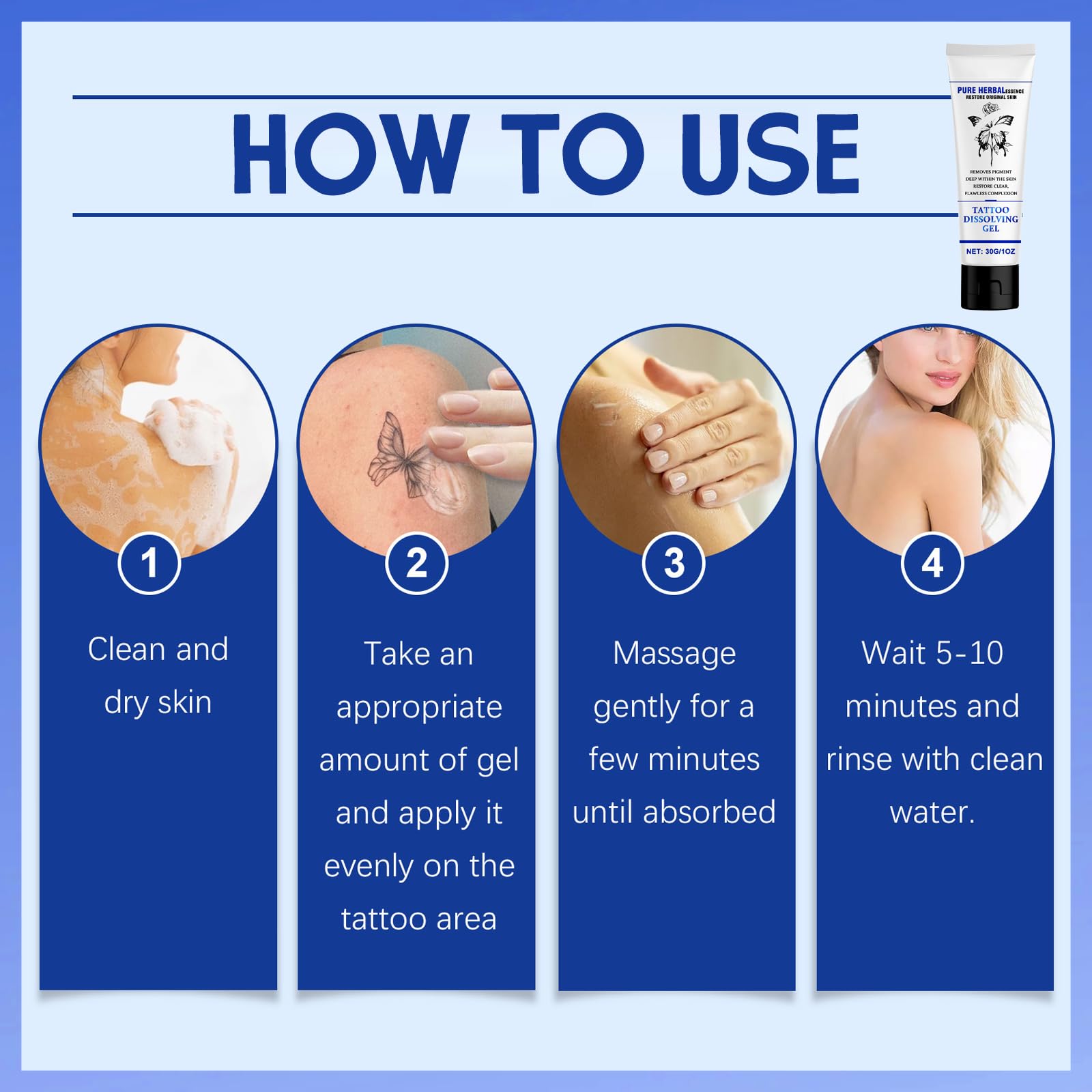 - Easy to use: Simply apply, let the cream penetrate the skin and let the tattoo fade away over time.