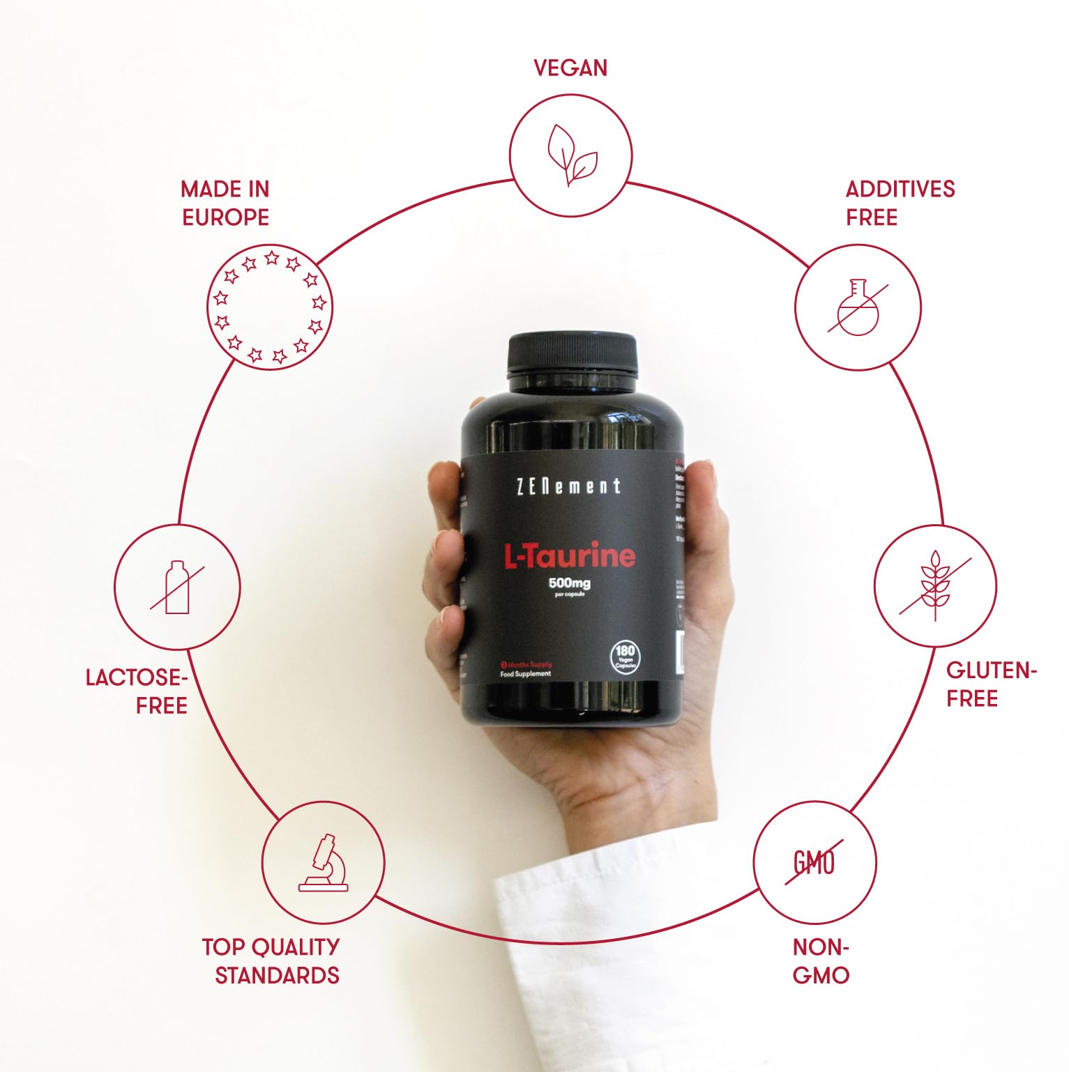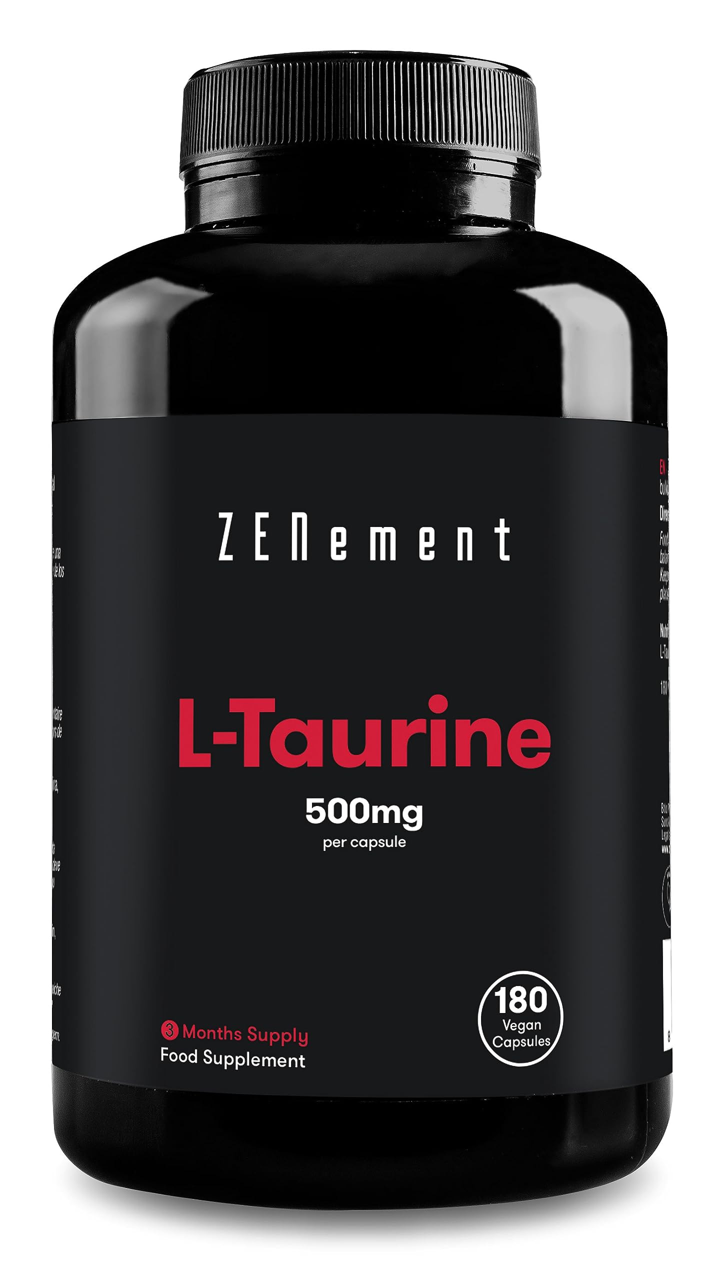Taurine Supplement 1000mg Capsules Per Serving | 180 High Strength Taurine Capsules Vegan (3 Months Supply) | Pre Workout Supplement for Men & Women | Essential Amino Acid | Gluten Free | Zenement