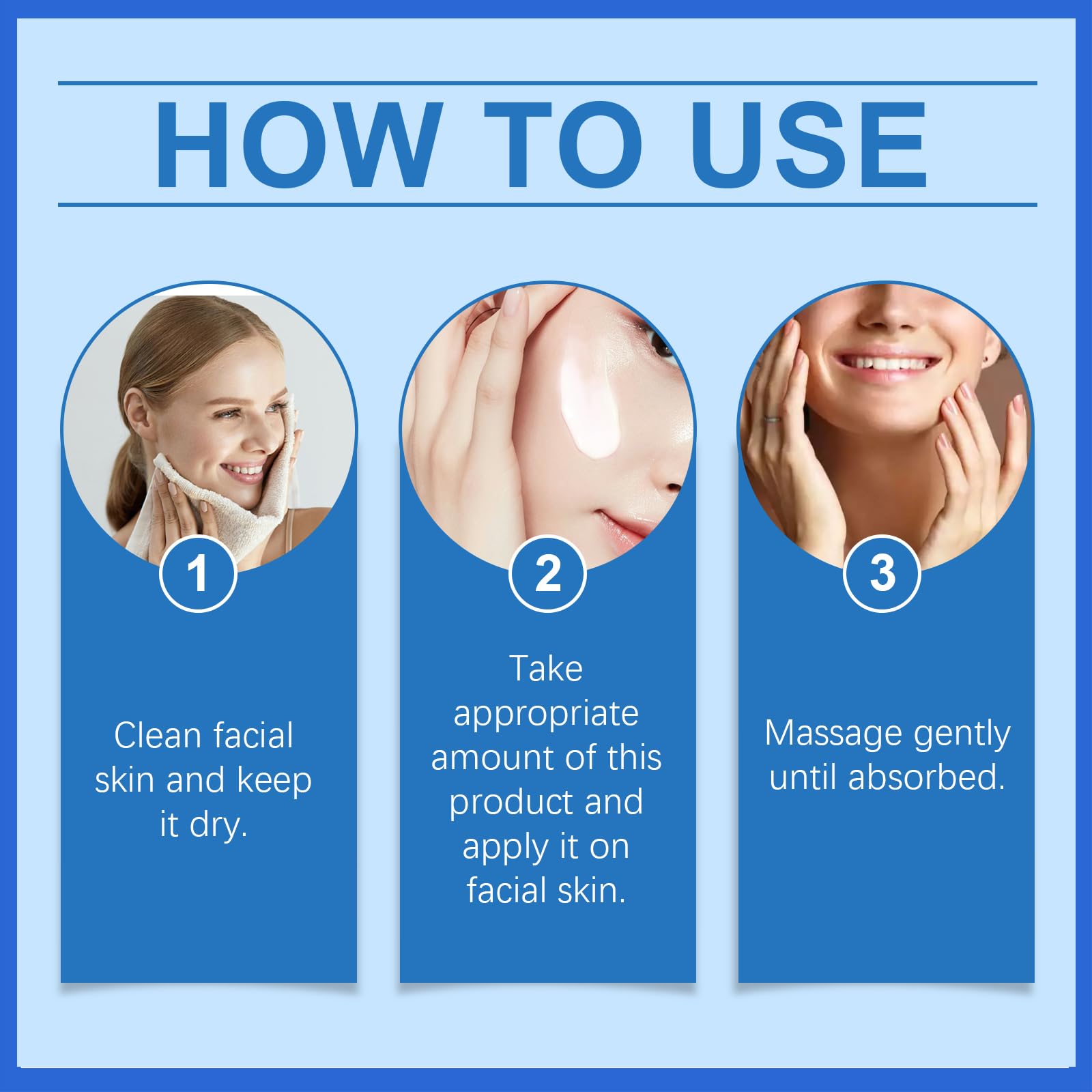 Step 3: Gently press the essence or cream from the chin to the center outwards, towards the cheeks and the forehead.