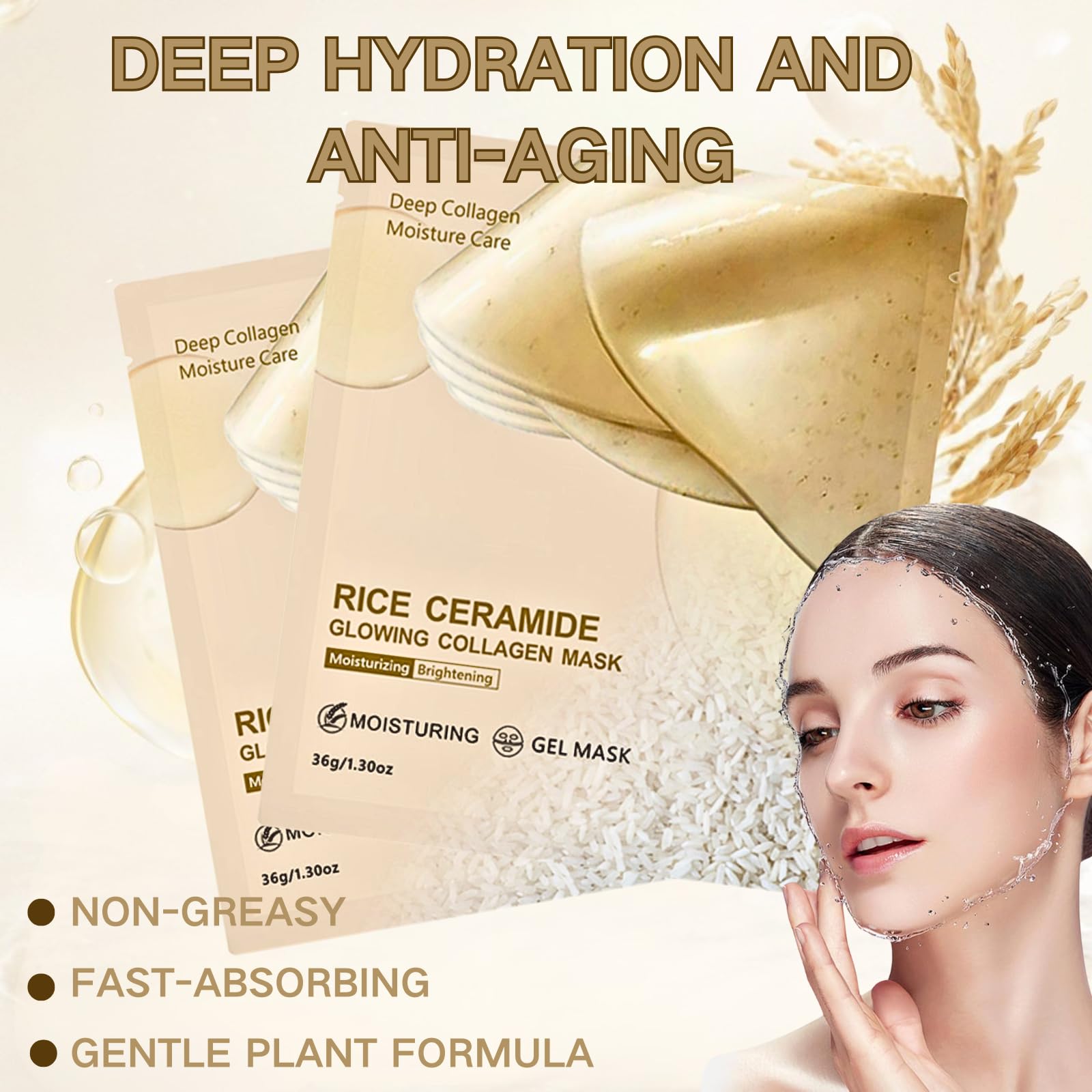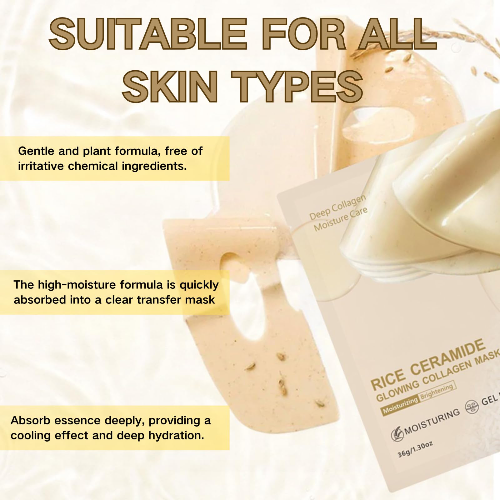 - Deep Hydration: The high-moisture gel formula infused with rice ceramide and collagen provides 24-hour hydration, combating dryness and flakiness.