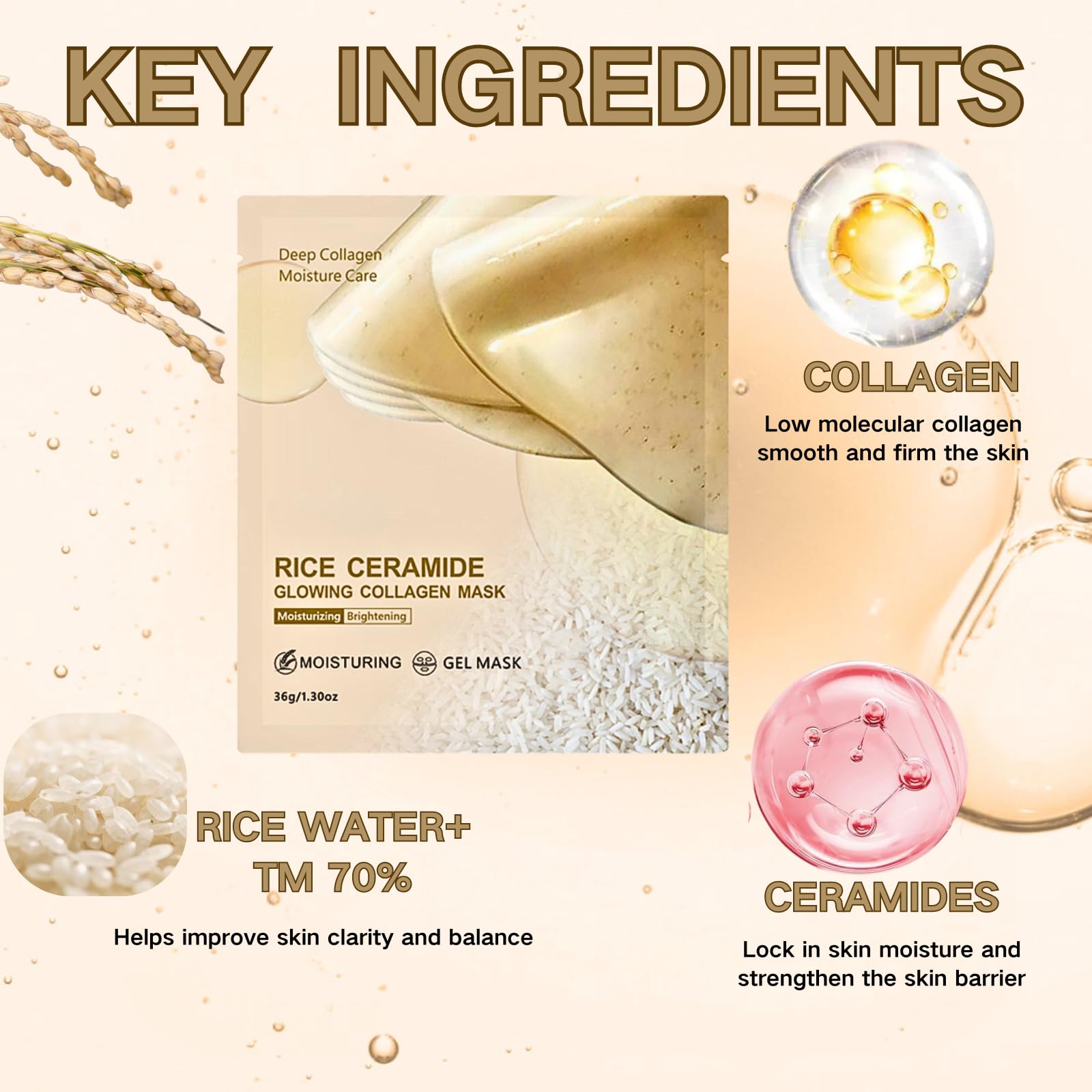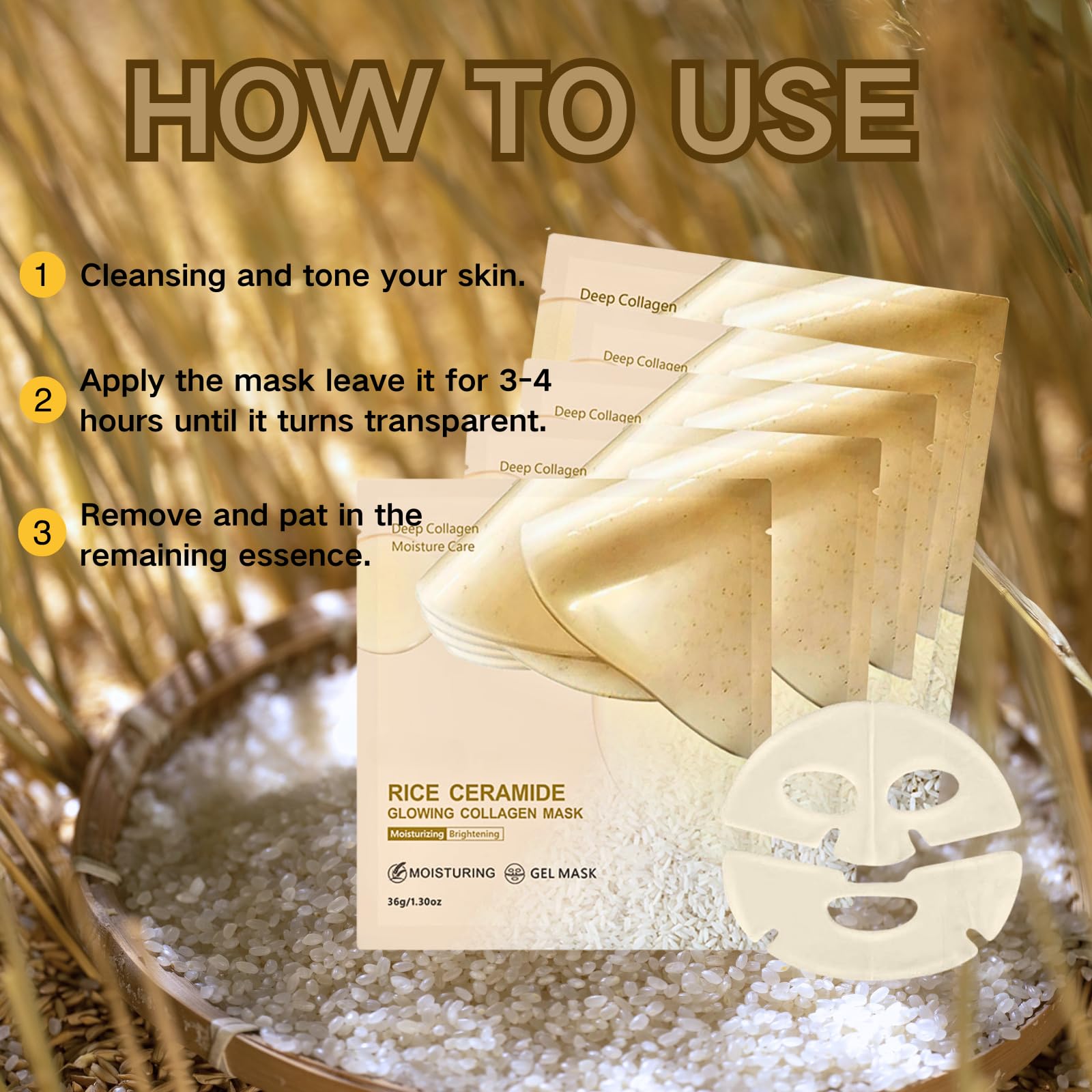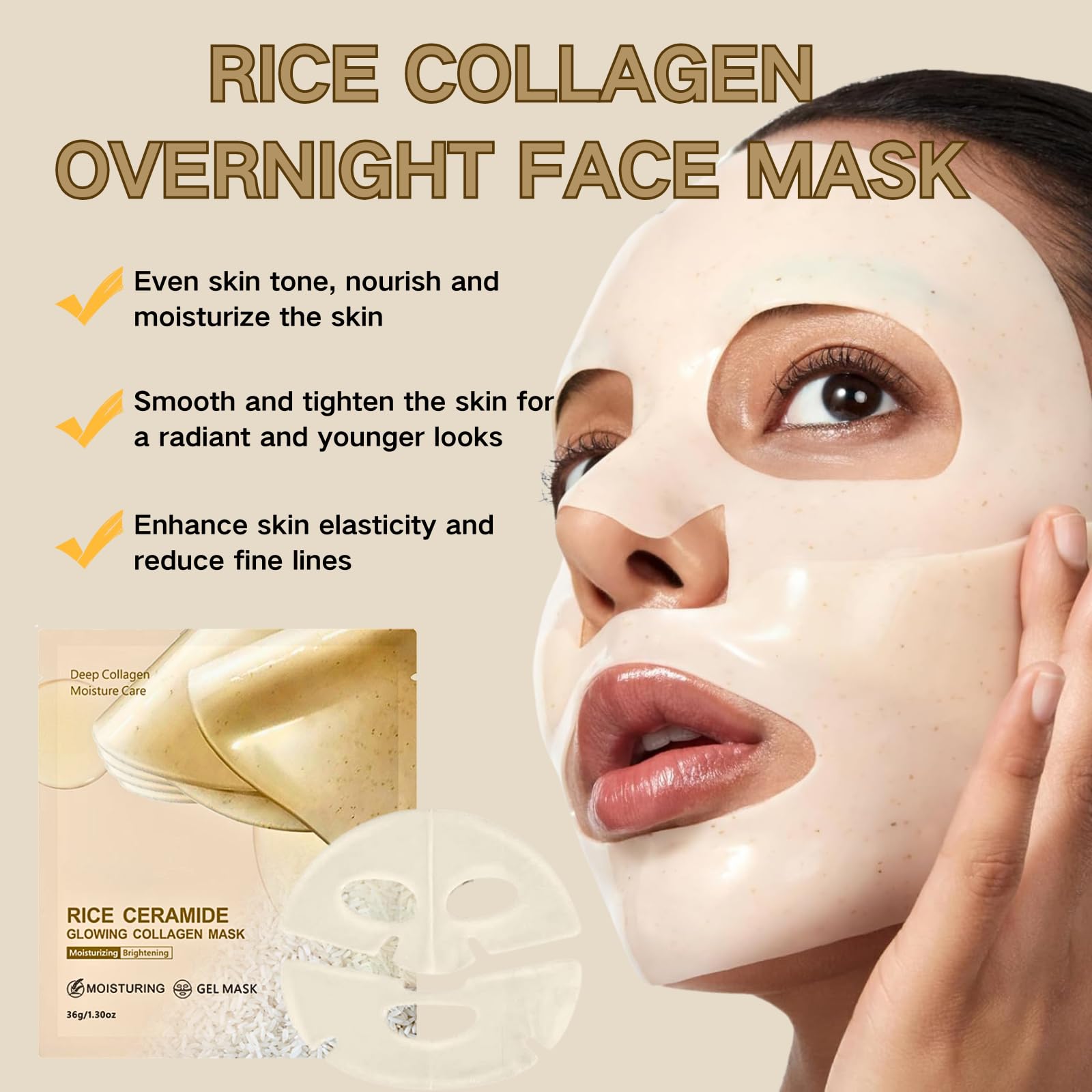 TBeautfave 5PCS Rice Glow Collagen Mask - Glass Skin Face Mask - Overnight Collagen Face Mask - Hydrating Co llagen Facial Masks for Lifting & Tightening, Anti-Aging, Anti Wrinkle, Korean Skin Care