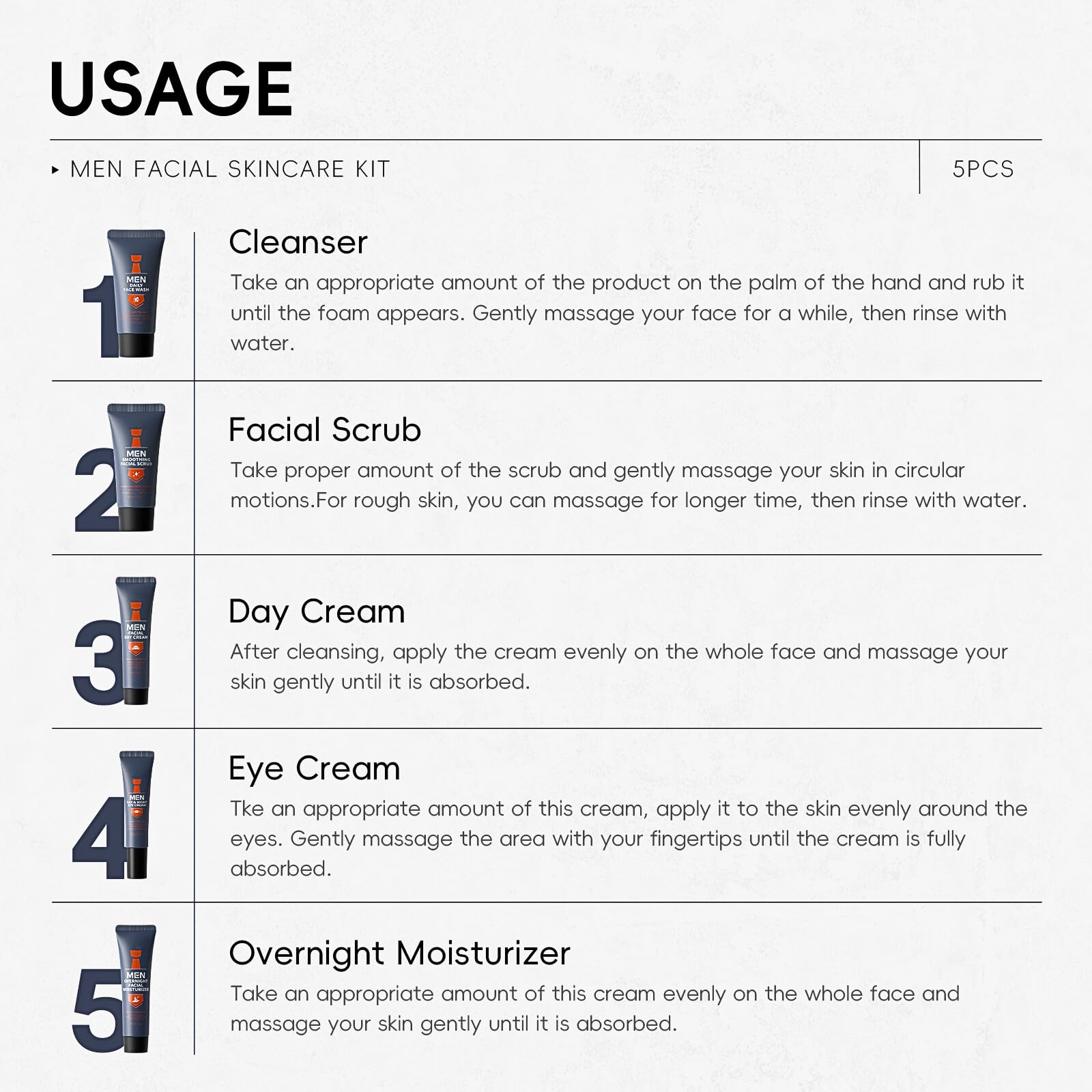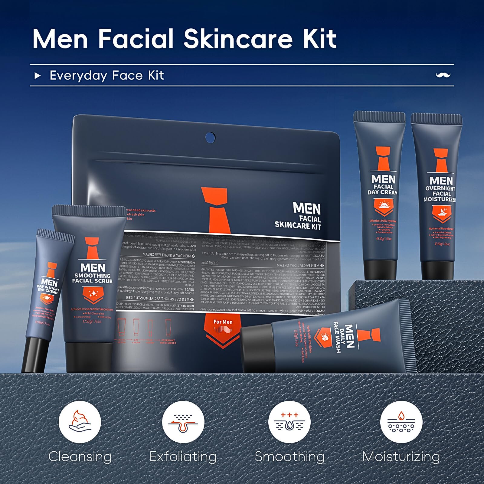 5-STEPS MENS SKIN CARE ROUTINE KIT - DESIGNED TO HELP REFRESH AND MAINTAIN MENS SKIN'S HEALTH✦ Cleansing ✦ Exfoliating ✦ Smoothing ✦ Moisturizing ✦ Oil Control