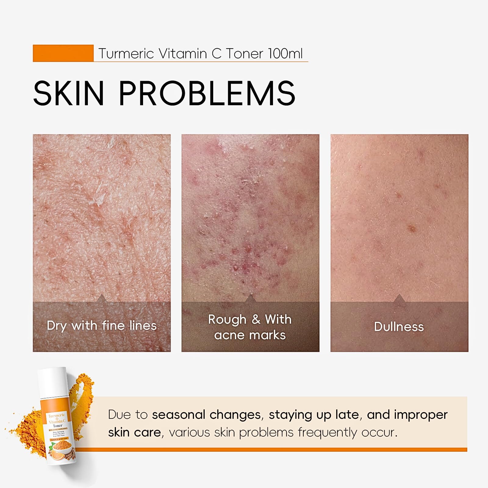 VITAMIN C + TURMERIC FACIAL TONER IS YOUR GO-TO SOLUTION FOR SOFT, SUPPLE, AND RADIANT SKIN● This turmeric toner is formulated with natural ingredients and turmeric extract to effectively fade stubborn dark spots and discoloration, wrinkles caused by acne or age