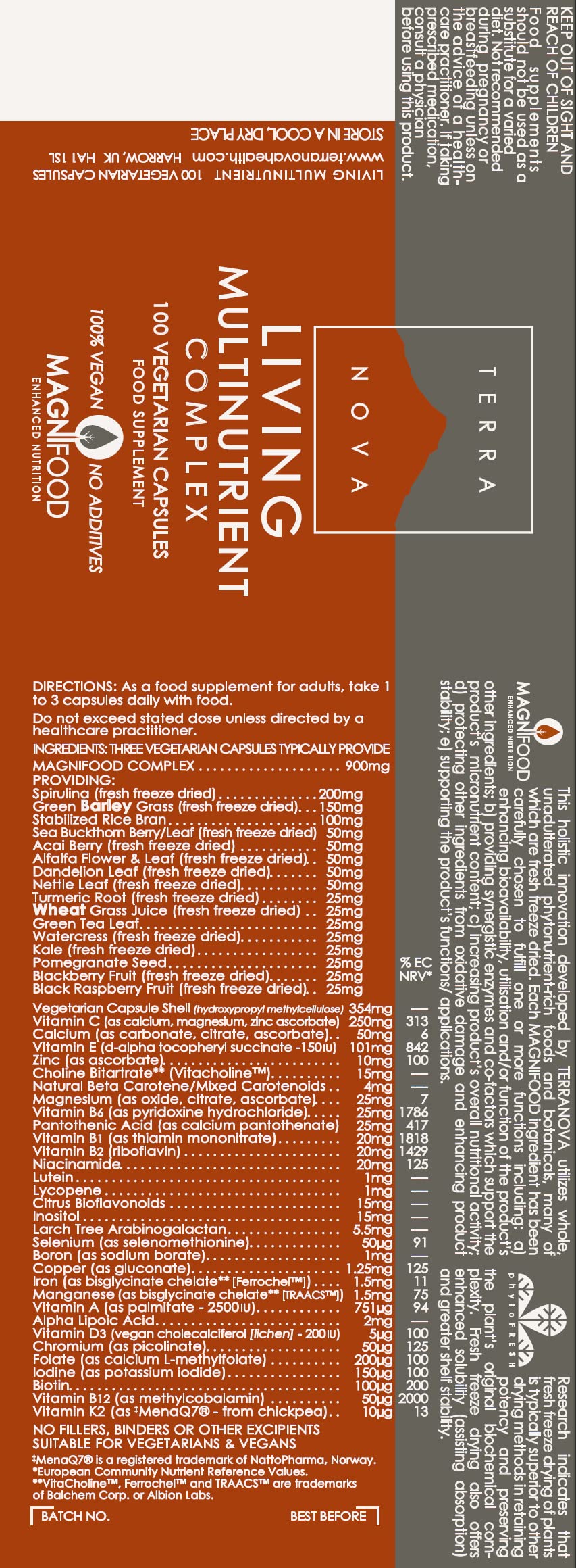 Terra Nova Living Multinutrient Complex (100 Vegetarian Capsules)