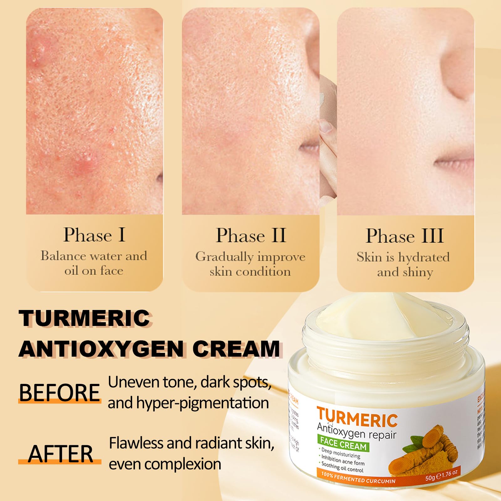 Tired of redness, dryness, or oily patches disrupting your complexion? Our Turmeric Face Cream is crafted for busy lives seeking instant relief and lasting radiance. Lightweight yet intensely nourishing, dark spot remover for face melts into skin to soothe irritation, balance moisture, and reveal a smoother, more even tone—without heavy residues or artificial fragrances. Finally, a simple solution for sensitive and combination skin that just works.