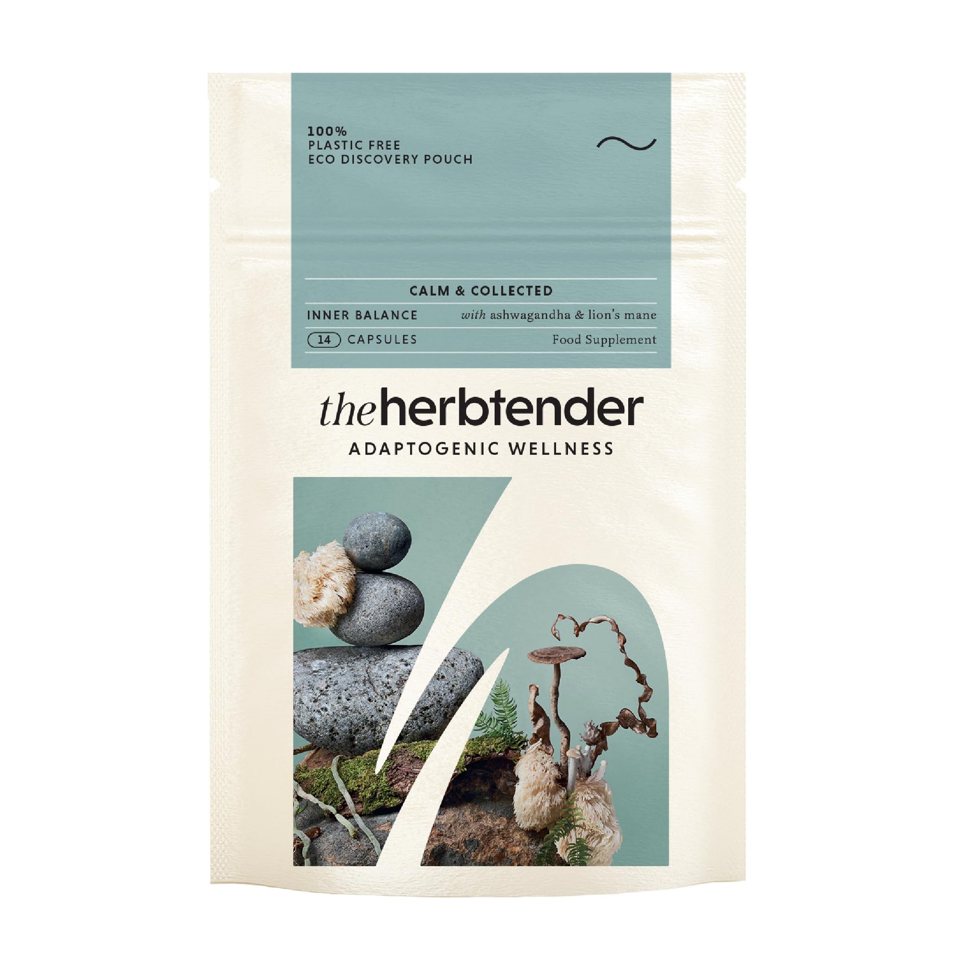 THE HERBTENDER, Calm & Collected - Vegan Adaptogen Supplements with Ashwagandha & Lion's Mane to Relax. (14 Capsule Refill Pouch)