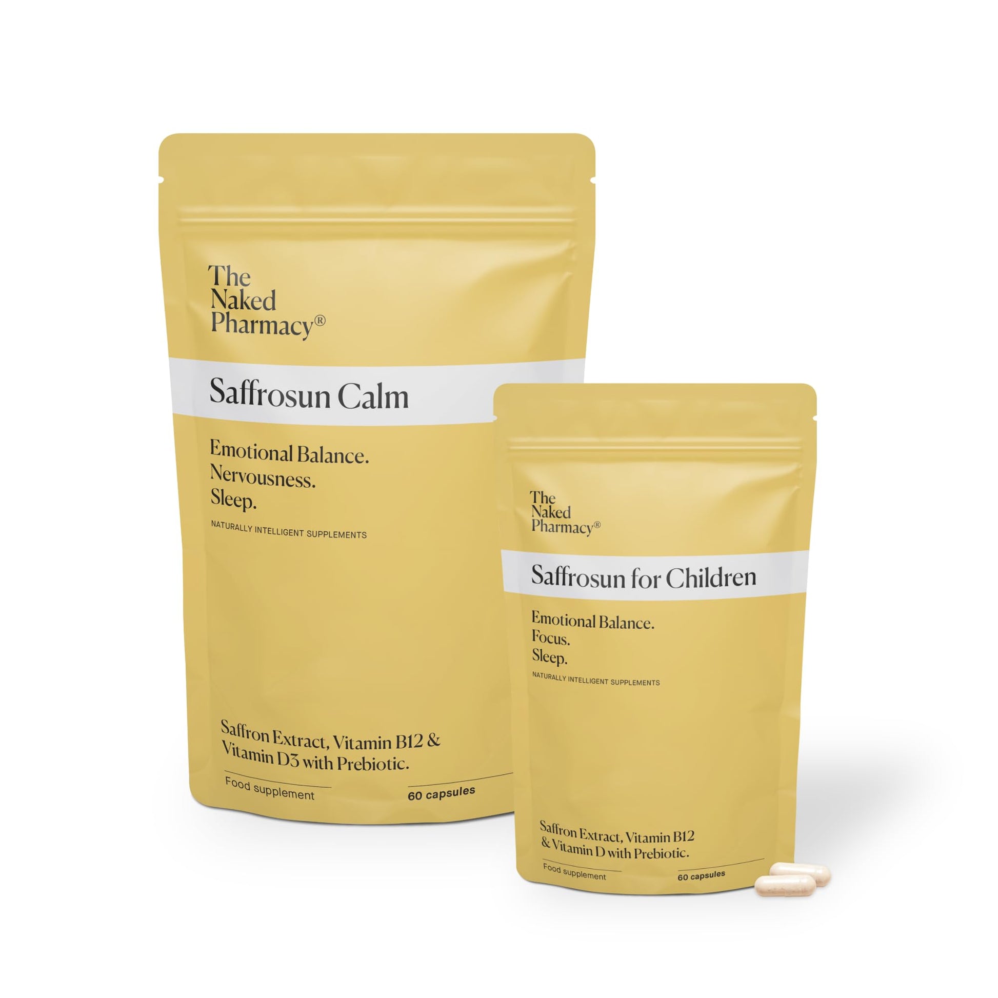 The Naked Pharmacy | Saffrosun Family Bundle | Natural Saffron Supplements for Children & Adults | Vitamin B12 | High Strength | Emotional Balance & Fatigue | No Additives | Vegan | 120 Capsules