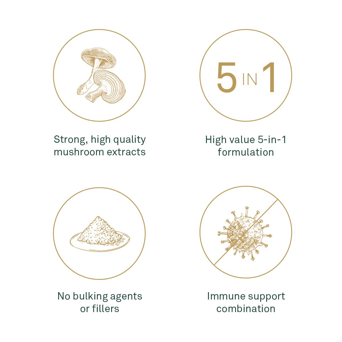 The equivalent of 5 supplements in one, with Reishi extract, AHCC, Zinc, Vitamin D3 and K2 combined into one vegetarian capsule. 350mg reishi extract is an 8:1 extract, meaning that it is the equivalent of taking 2800mg reishi mushroom powder, giving 210mg polysaccharides per serving – the active component of Reishi AHCC is used extensively in Japan and by many practioners worldwide. Alpha glucans are the active component and RE-AHCC contains AHCC with a certified alpha glucan level of 30% Zinc citrate is a more absorbable form of zinc and can help maintain normal function of the immune system and contributes to the protection of cells from oxidative stress. Zinc has a role in the process of cell division and contributes to normal cognitive function. Vitamin D3 is the more bioavailable form of vitamin D and contributes to the normal function of the immune system. Vitamin K2 supports the function and absorption of vitamin D. No fillers have been used in RE-AHCC. The product has not been certified as organic, however the mushroom ingredients are all organic.More Info