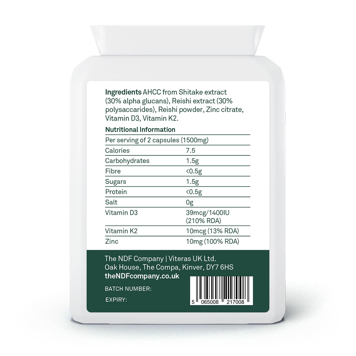 The NDF Company RE-AHCC - 5 in 1 Supplement with Reishi Extract , AHCC, Zinc, Vitamin D and K, 60 Count (Pack of 1)
