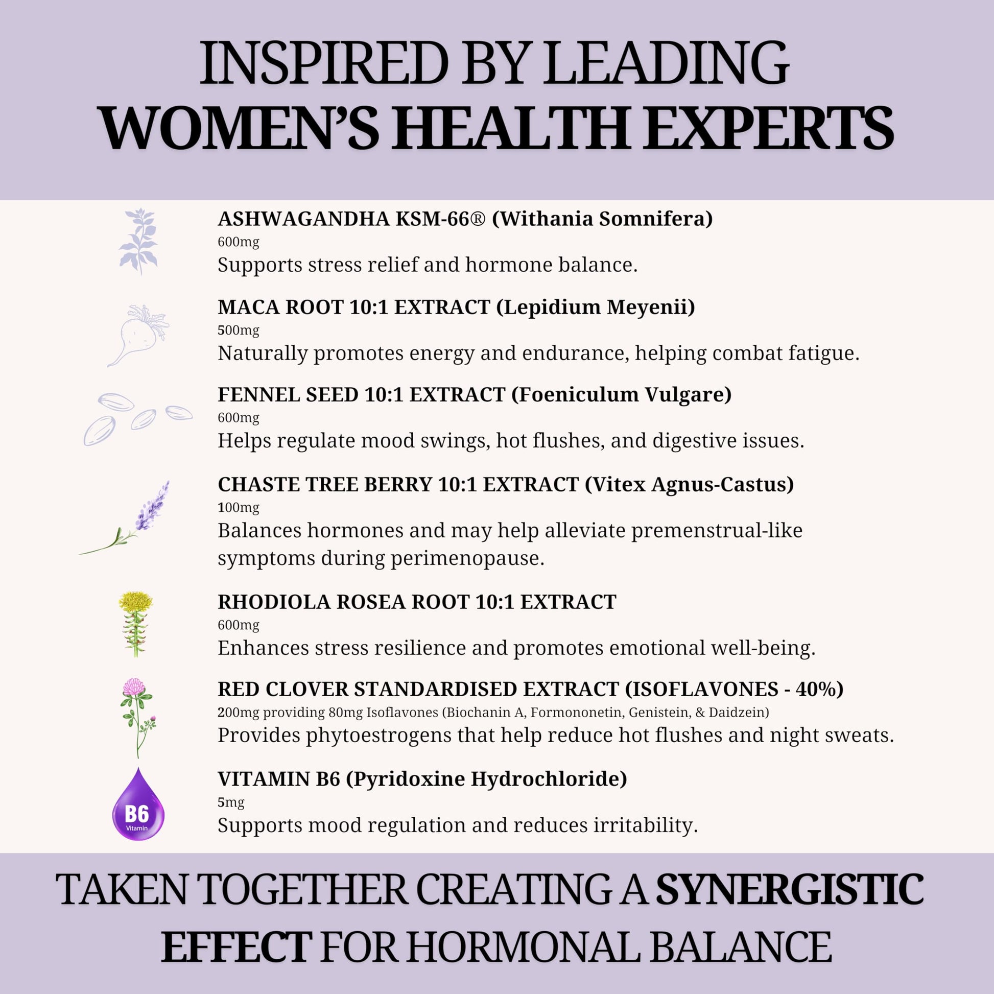 The Supplement Stack - Perimenopause & Menopause - Ashwagandha KSM-66, Maca, Fennel, Chaste Tree Berry, Red Clover & Rhodiola for Hormone Balance, Hot Flushes, Sweats & Mood Support – UK Company