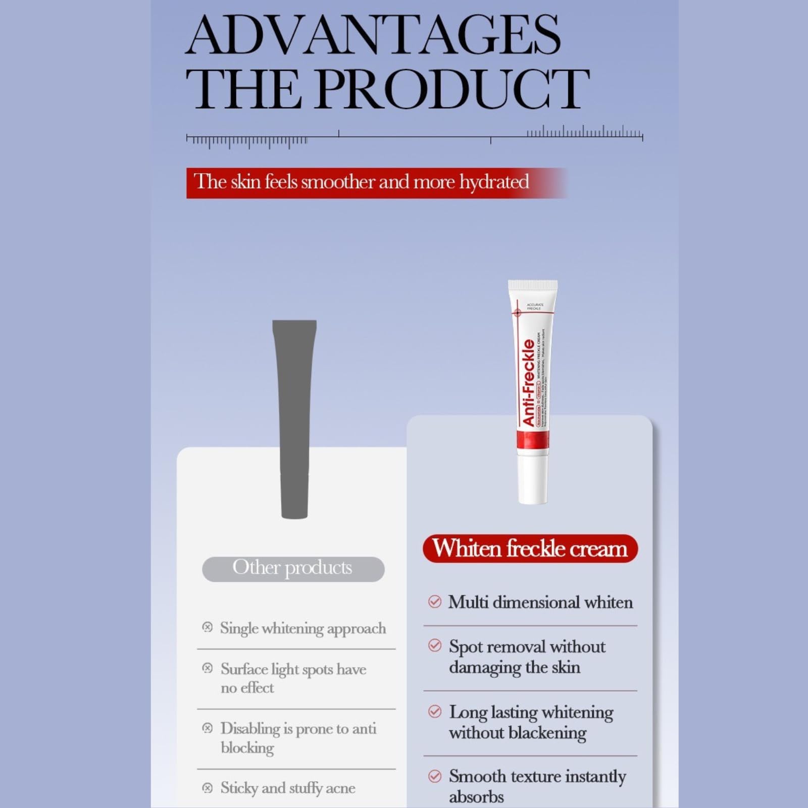 Struggling with stubborn freckles or sun-induced dark patches? Our Anti-Freckle Cream harnesses the power of botanicals and advanced actives to restore luminosity without compromising skin health,Reveal Your Skin’s Natural Radiance.