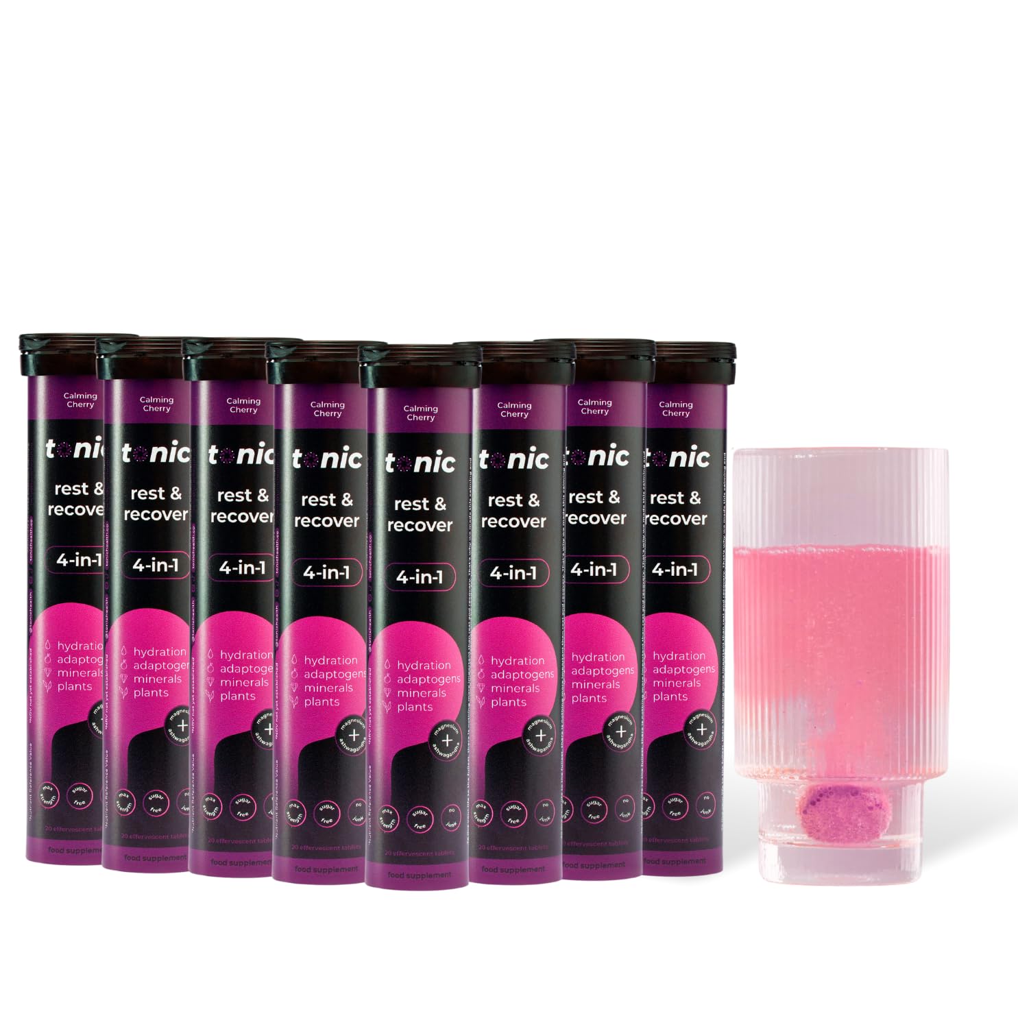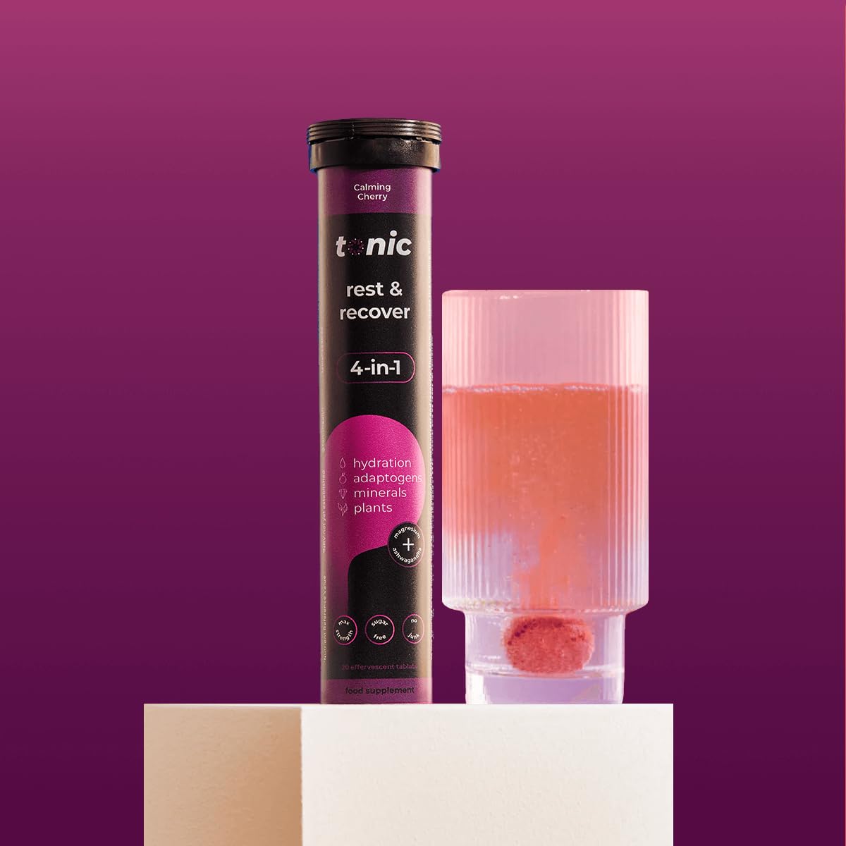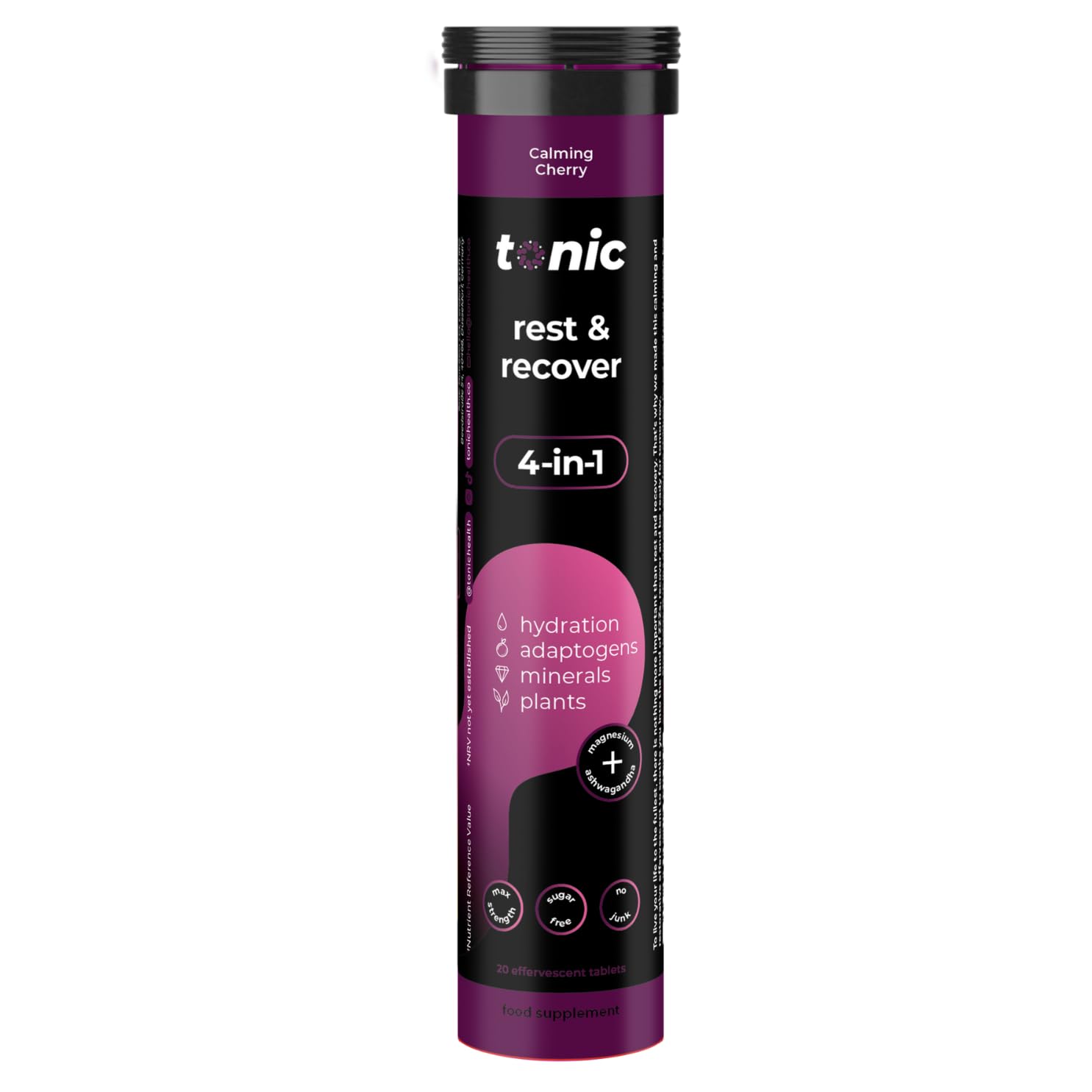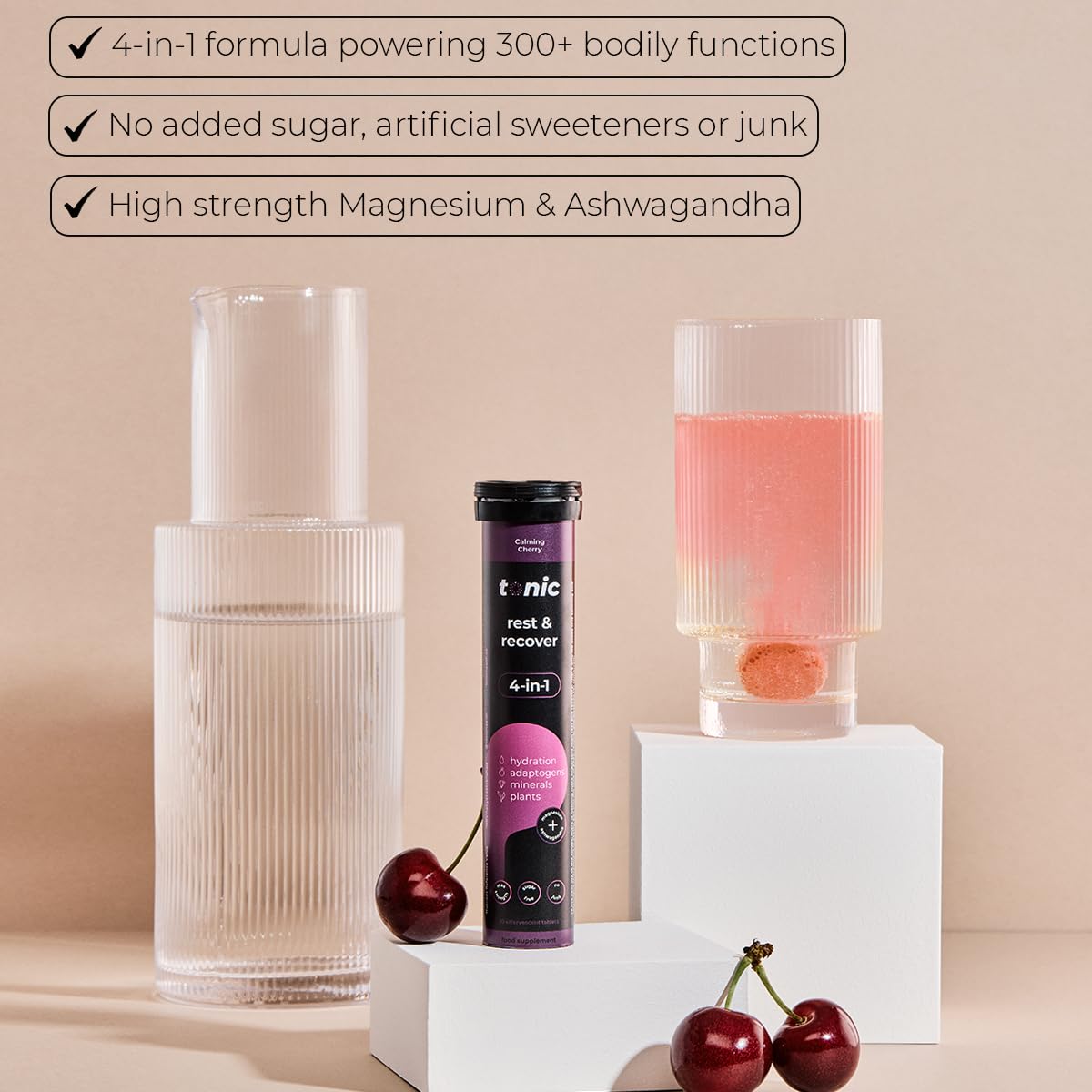 Tonic Health Rest and Recovery Magnesium Effervescent Tablets - 300mg Elemental Magnesium, Ashwagandha, Lemon Balm - No Sugar, Vegan Multivitamin - Relax and Recharge, Calming Cherry 160 Count