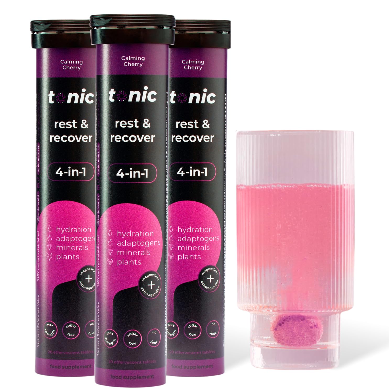 Tonic Health Rest and Recovery Magnesium Effervescent Tablets - 300mg Elemental Magnesium, Ashwagandha, Lemon Balm - No Sugar, Vegan Multivitamin - Relax and Recharge, Calming Cherry 60 Count