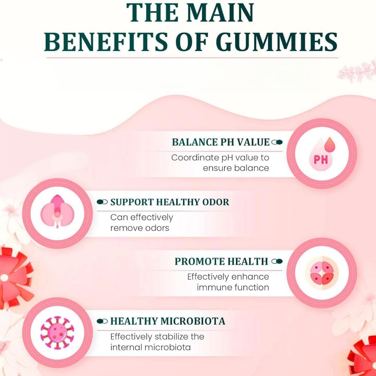 Features:1. Feminine balance gummies is convenient and easy to take, soft in taste, easy to carry, enjoy health care anytime, anywhere.