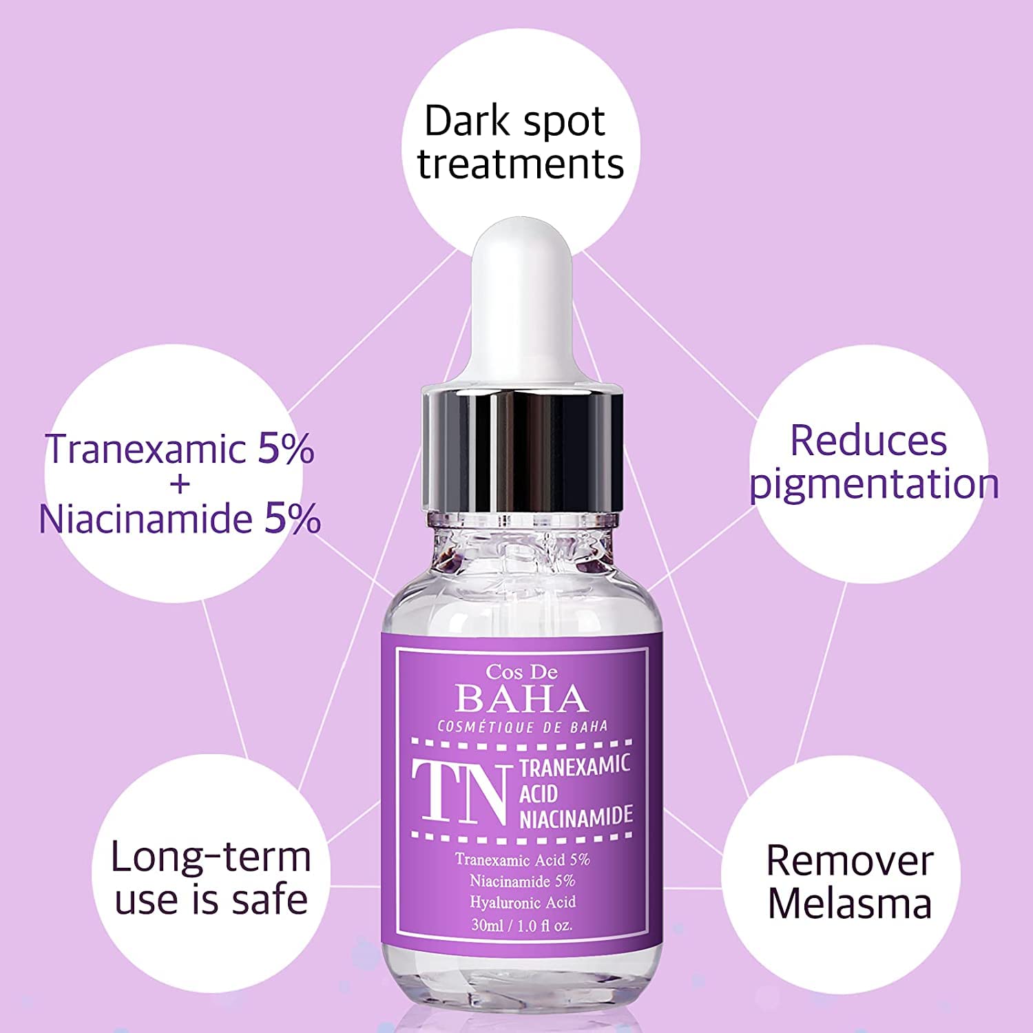 Tranexamic Acid 5% Serum with Niacinamide 5% for Face/Neck - Helps to Reduce the Look of Hyper-Pigmentation, Discoloration, Dark Spots, Remover Melasma (30ml 1 fl.oz.) for Cos de baha