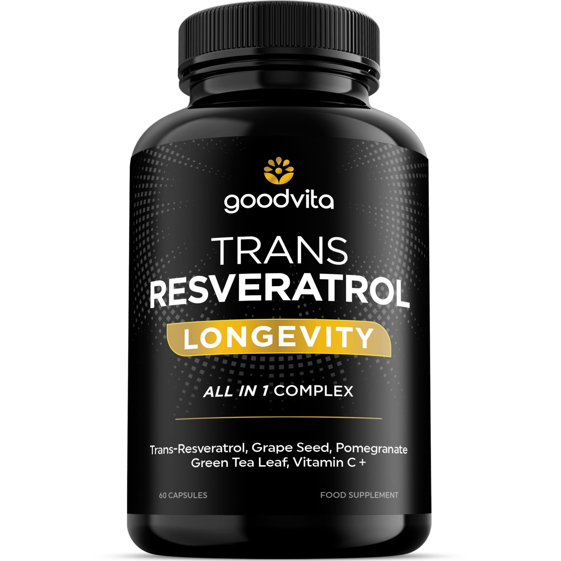 Goodvita Trans-Resveratrol Complex delivers 300mg of 100% Pure Resveratrol, 270mg of Polyphenols (Green Tea, Grapeseed, Pomegranate, Acai, Alfalfa, Hawthorn Berry, Red Wine Extract, Noni and Blueberry) as well as Vitamin CMore Info