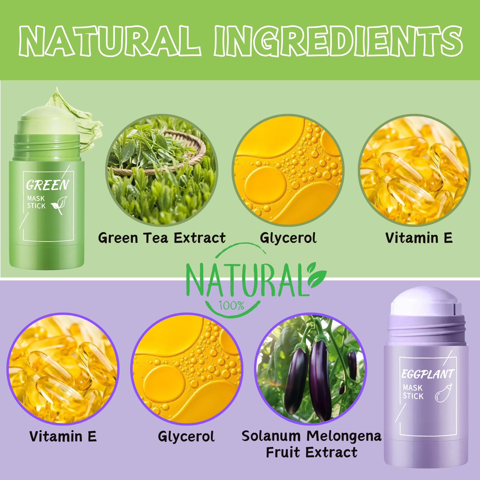 Introducing the 2-in-1 Green Tea & Eggplant Mask Stick Set: