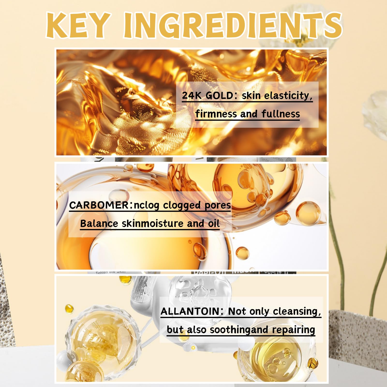 The peel off face mask imparts an opulent, radiant glow and locks in moisture for ultra-hydrated skin, leaves the skin silky smooth with radiant complexion.Increases cellular renewal, helps to improve the appearance of fine lines and wrinkles,Reduces Fine Lines & Wrinkles.