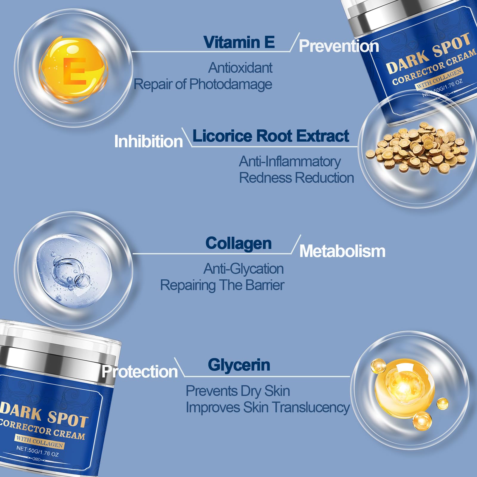 Net Weight: 50g/1.76 OZ Dark spot corrector for face