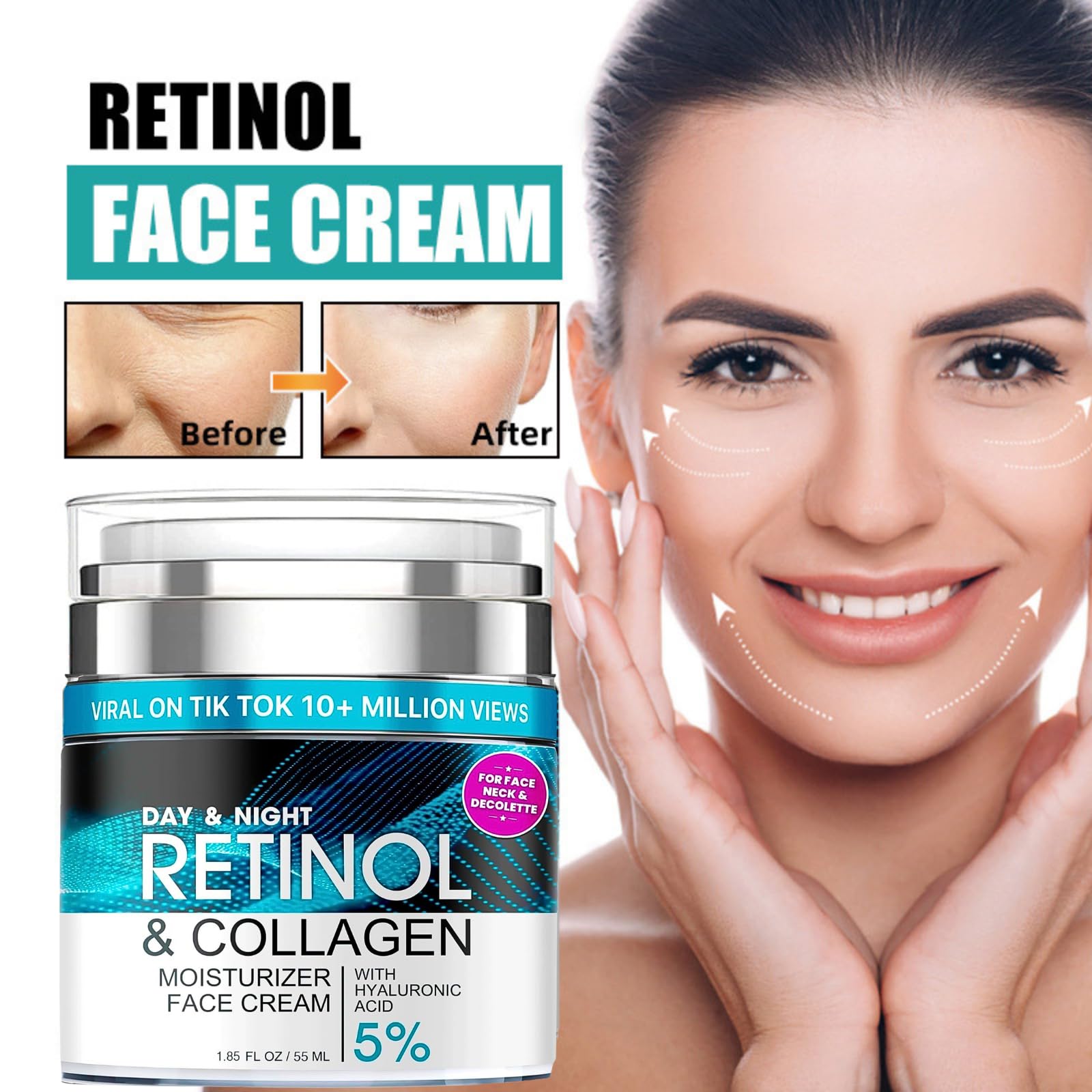 Trendyfave Retinol Cream for Face, Advanced Retinol Collagen Cream for Face with 5% Hyaluronic Acid, Anti-Aging Retinol Cream, Anti-Wrinkle, Reduce Fine Lines Lifting and Firming Cream, 24-Hour Face Care 55ml