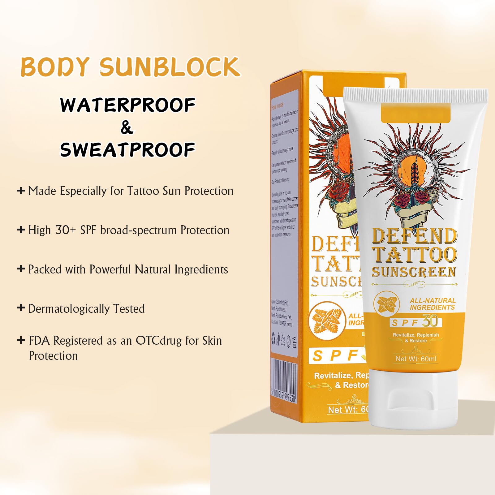 Trendyfave Tattoo Care Sunscreen - Tattoo Sun Cream Spf 30, Tattoo Sun Protection, Very Water+Sweat Resistant Natural Sunscreen, Tattoo Aftercare Suncream Lotion,Tattoo Fade Protection, 60ml