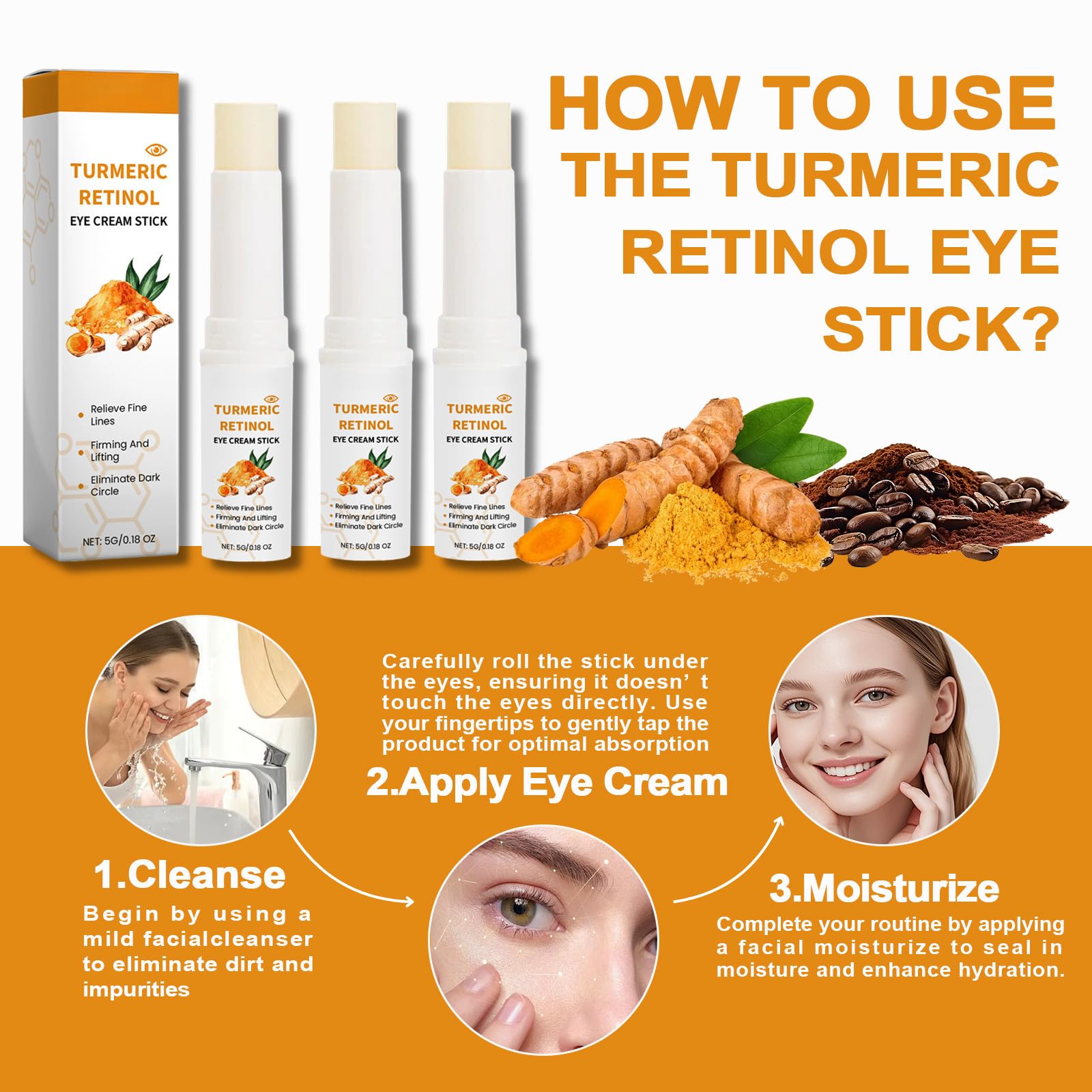Trendyfave Turmeric Retinol Eye Stick, Eye Cream For Dark Circles And Puffy Eyes, Eye Cream Anti Aging,For Fine Lines,Eye Bags Remover, Anti Wrinkle,Dull Eye Skin, Moisturizing, Firming, Hydrating,3pcs