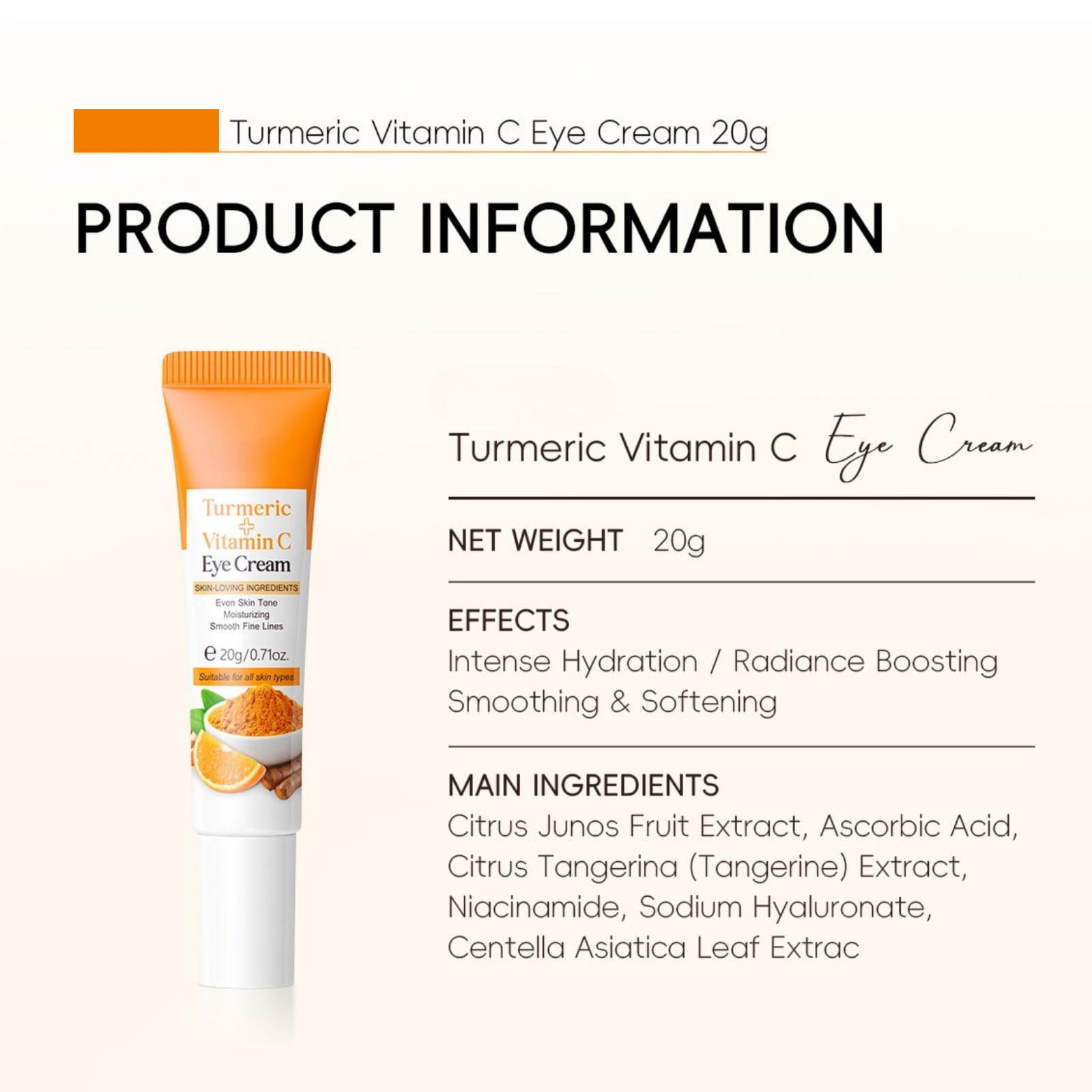 Trendyfave Turmeric Vitamin C Eye Cream Anti Aging, Turmeric Eye Cream For Dark Circles And Puffy Eyes, For Even_Skin Tone, Smooth Fine Lines - 2PCS