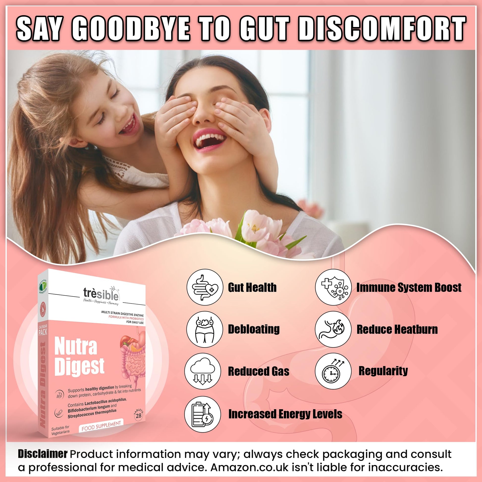 Tresible Trèsible Nutra Digest Probiotics for Women Gut Health (Pack of 3) - Veg Probiotic for Flat Belly & Bloat Control, Women's Probiotics, Multistrain Digestive Enzymes with Probiotics, 12 Weeks Supply