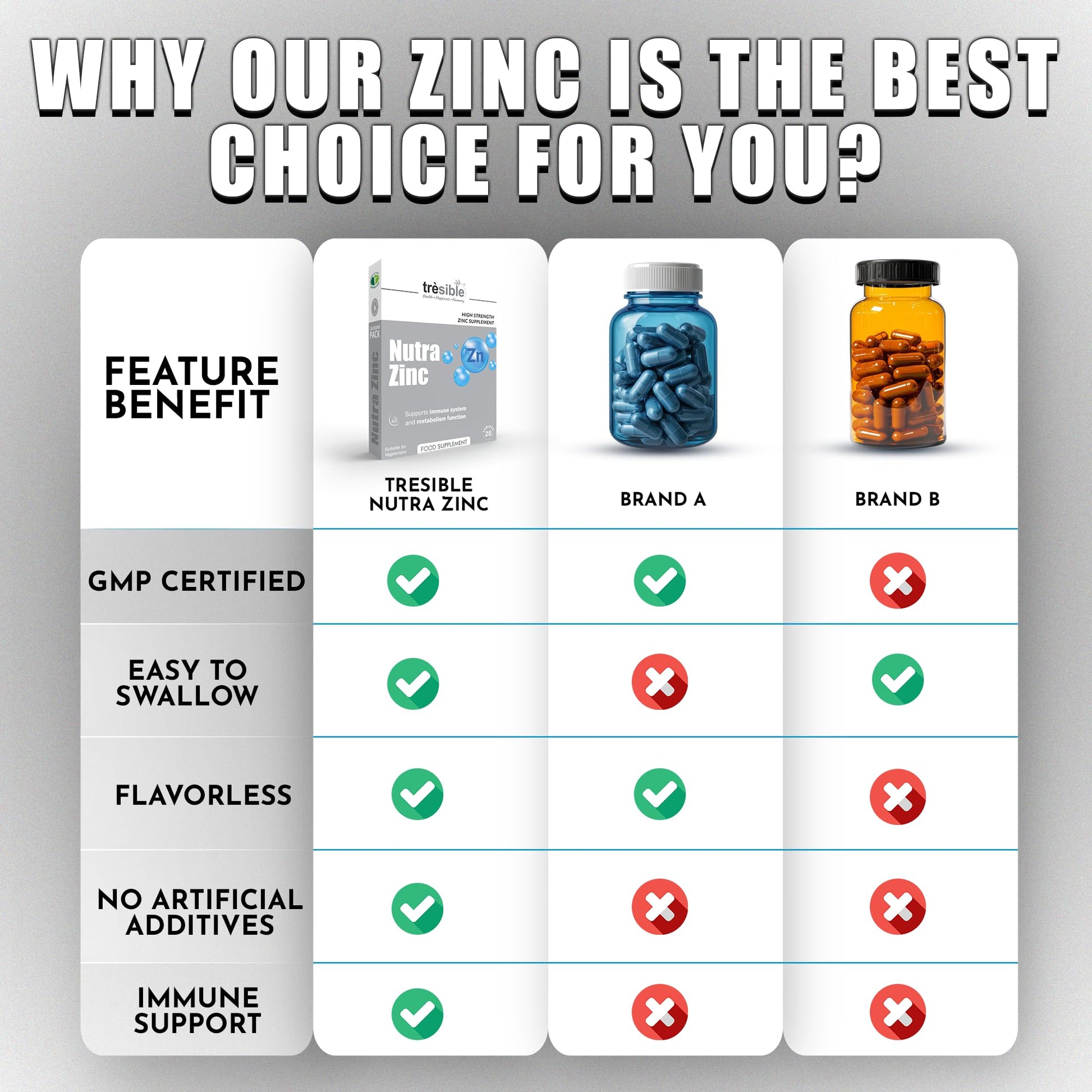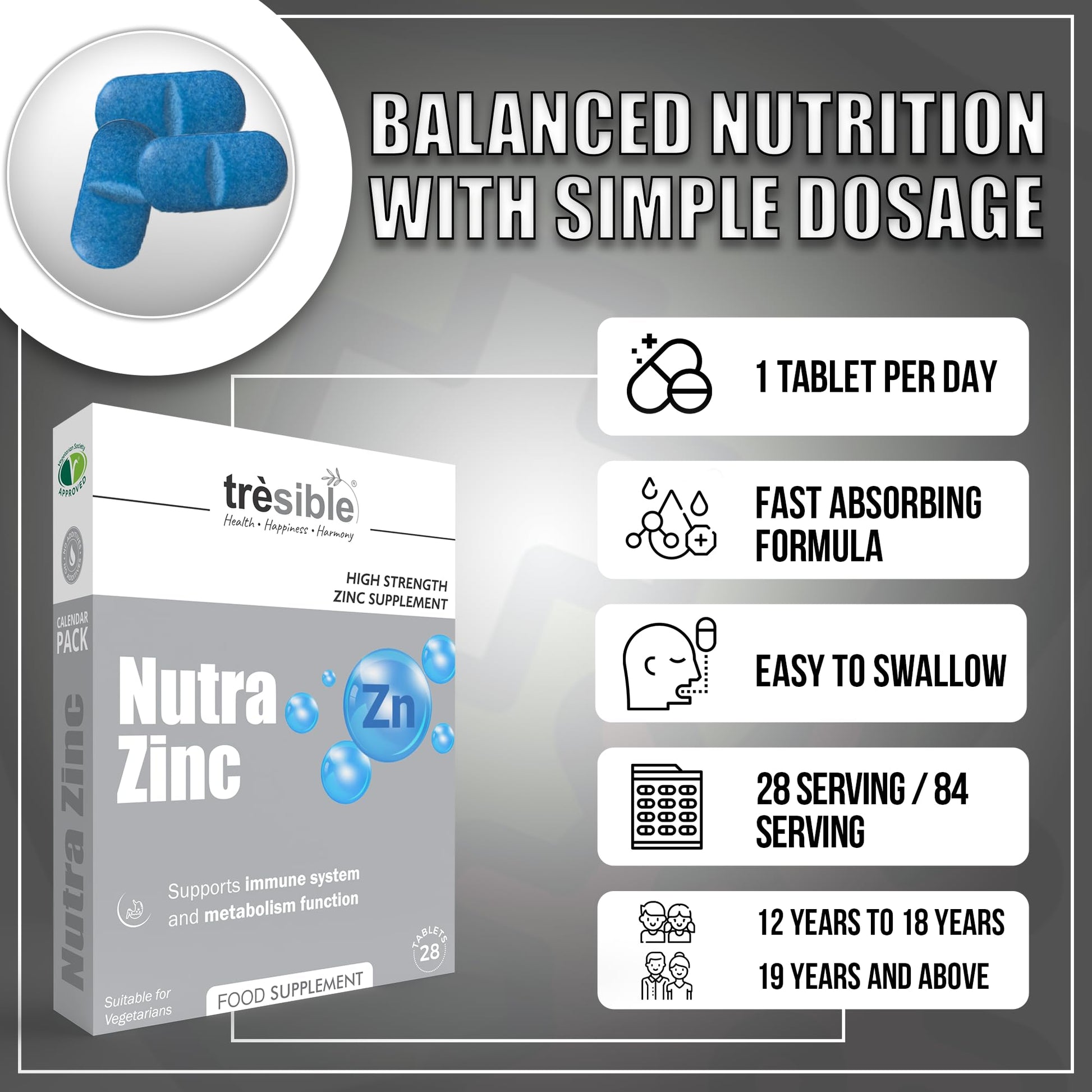 Introducing tresible zinc tablets, your essential partner in achieving optimal health and vitality! Each tablet contains a potent 50mg of high-strength zinc sulphate, meticulously formulated to support a variety of crucial bodily functions. Designed for both men and women, these tablets provide comprehensive benefits that cater to the needs of adults and children aged 12 and over. Zinc is an essential mineral that plays a pivotal role in numerous physiological processes. Our tresible zinc tablets are particularly effective for promoting healthy hair, skin, and nails, ensuring you look and feel your best. Additionally, zinc contributes to the strength of your bones, supporting overall skeletal health, which is especially important as we age. One of the standout benefits of zinc is its significant impact on immune function. Making it an ideal choice for athletes, active individuals, and anyone seeking to enhance their immune resilience. With the added advantage of zinc’s antioxidant properties, you can combat oxidative stress and support overall wellness. Our products are GMP certified, ISO certified, and approved by the Vegetarian Society. They are gluten-free, halal, and vegetarian, ensuring that everyone can benefit from this essential nutrient without compromise. Taking Tresible zinc tablets is simple, just one tablet daily with or after your main meal is all you need to maintain optimal nutritional levels. These tablets also support reproductive health, enhancing fertility and overall sexual wellness for both men and women. For best results, store your tablets in a cool, dry place, away from direct sunlight, and keep them out of children's reach. As with any supplement, it’s advisable to consult with a healthcare professional before beginning a new regimen, especially if you're pregnant, breastfeeding, or have underlying health conditions.More Info