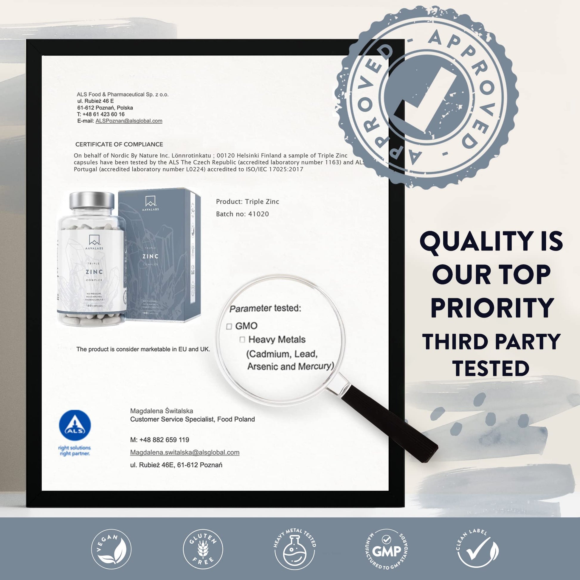 Triple Zinc 25mg - 3 Forms of Zinc with Vitamin C - Zinc Picolinate, Zinc Bisglycinate and Zinc Monomethionine - 180 High Strength Zinc Tablets - 6 Months Supply - Natural Zinc Supplements