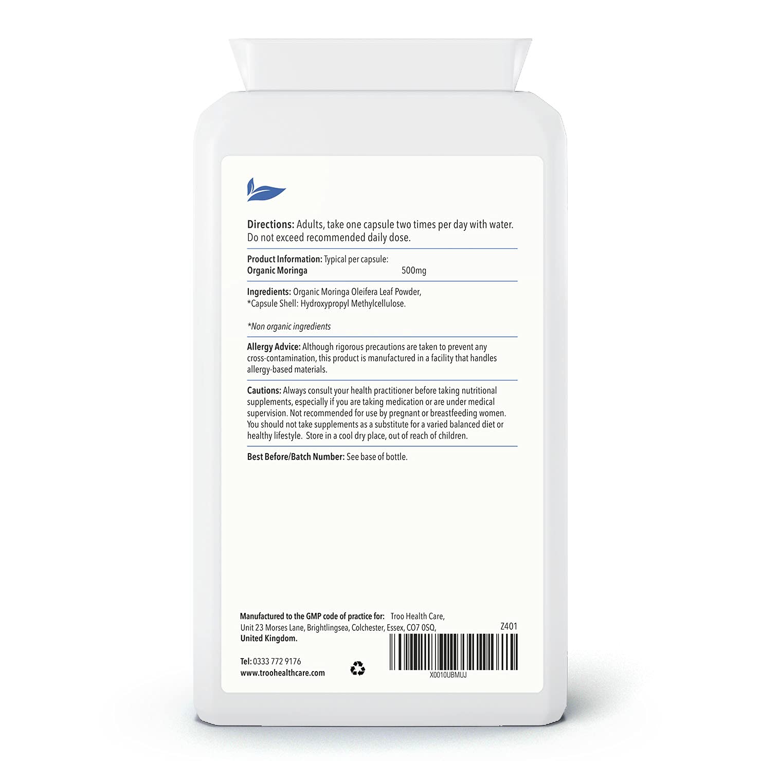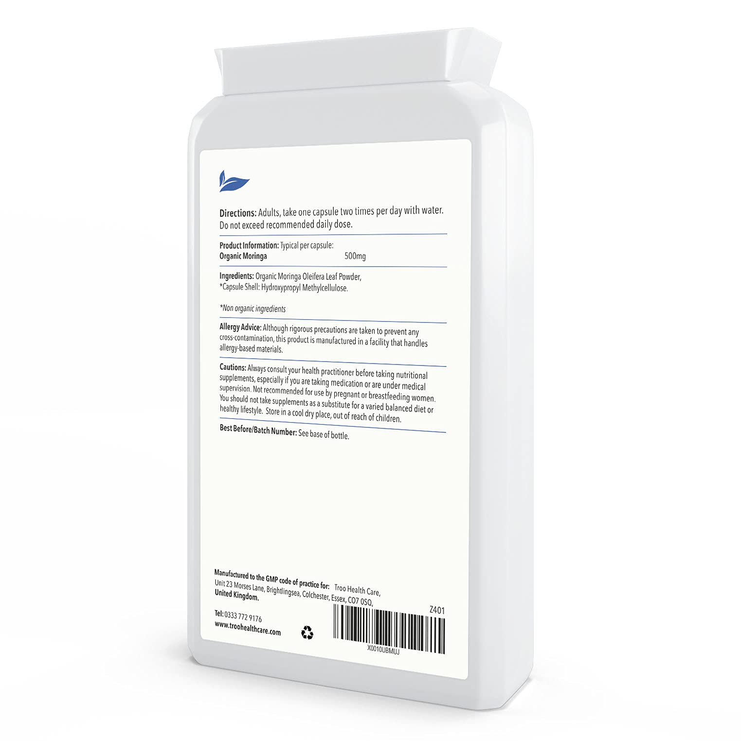 Troo Health Care Moringa Capsules are manufactured in the UK to GMP code of practice and ISO 9001 quality assurance certification. Only the finest quality raw materials in their highest and purest form are used.
