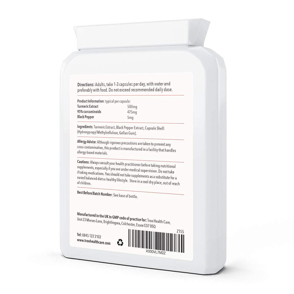 Troo Health Turmeric 500mg Capsules provide the strongest and purest Turmeric has been combined with Black Pepper Extract and carried in specifically designed targeted release capsules for improved bioavailability. The number one anti-inflammatory plant of ayurvedic medicine (Indian traditional medicine), Turmeric may help to maintain healthy joints, a healthy liver, a healthy digestive tract and a healthy circulatory system.The capsules used to carry this supplement are an innovative hypromellose (HPMC) formulation specifically designed to ensure optimal delivery for acid-sensitive products.