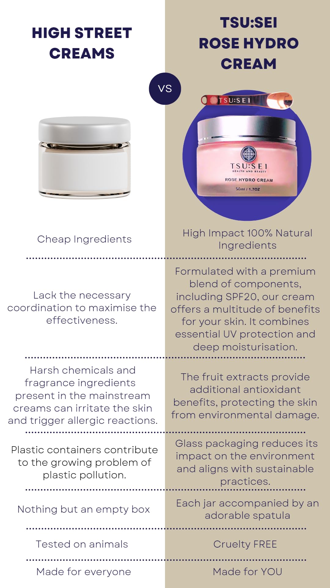 TSU:SEI Health and Beauty Rose Hydro Cream for Face by TSU:SEI - Organic Moisturiser for Women with SPF20, Vitamin E and Hyaluronic Acid. Natural Daily Facial Cream. Cruelty Free Skincare. 50ml.
