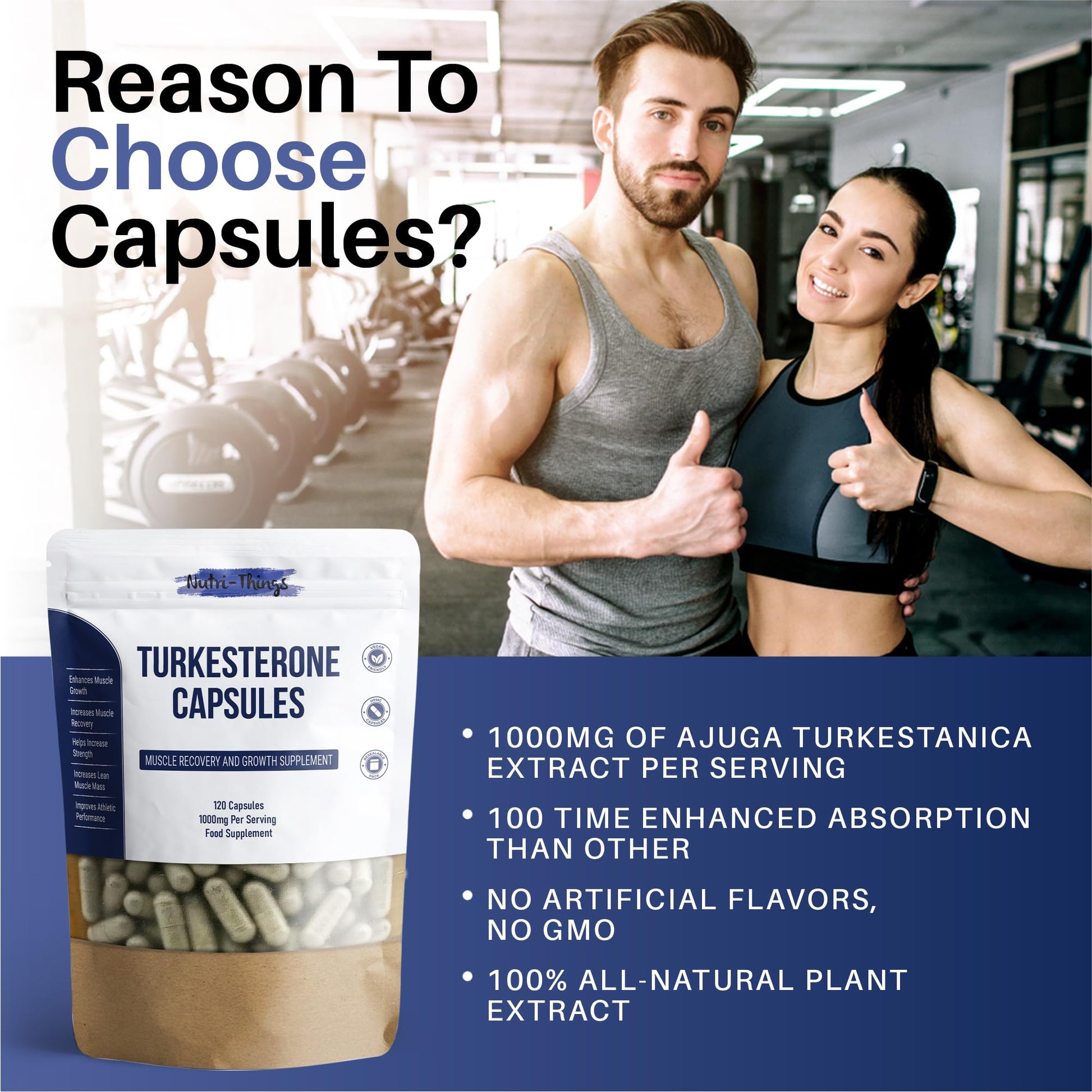 Turkesterone Capsules | Muscle Recovery and Muscle Growth Supplement | Max Strength 1000mg Per Serving | 120 Capsules