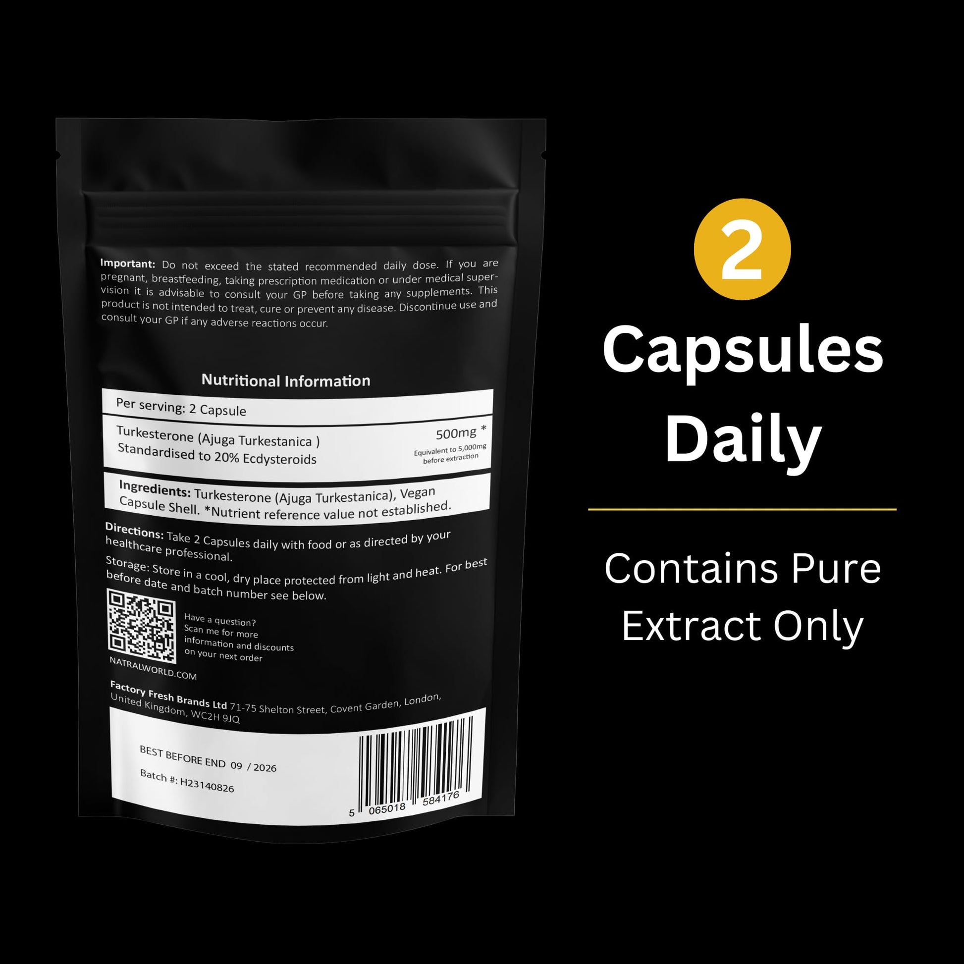 Discover the power of our High Strength Turkesterone supplement, delivering a potent 500 mg per capsule. Each bottle contains 120 capsules, providing a full 2-month supply of this powerful adaptogen. Known for its ability to support muscle growth, enhance endurance, and promote faster recovery, turkesterone is a natural, plant-based compound that helps you push your limits and achieve your fitness goals. Whether you're an athlete looking to enhance performance or simply want to maximize your workouts, our high-strength formula is designed to deliver results. Unlock your true potential with the strength of Turkesterone.More Info