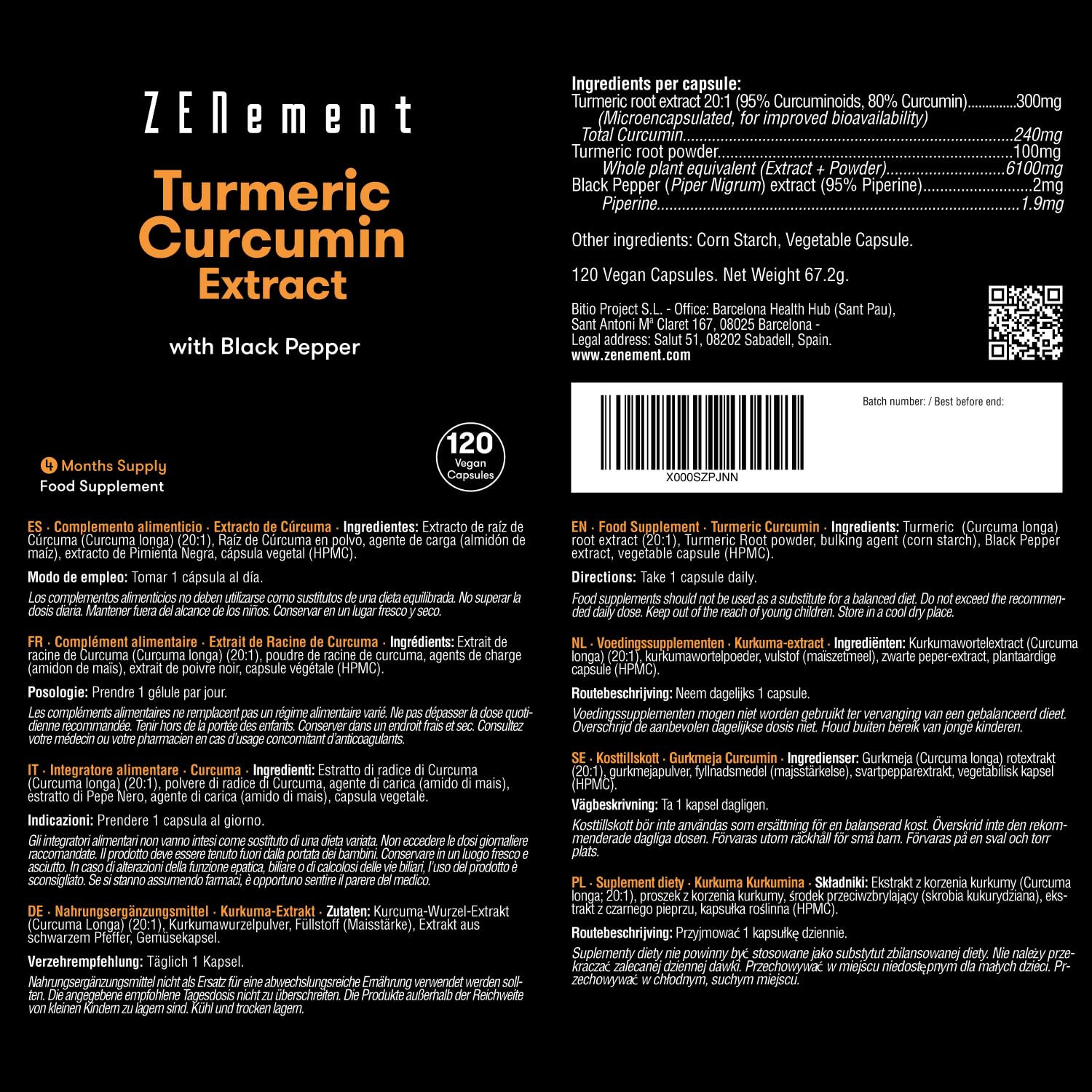 Turmeric 6100mg with Black Pepper | 120 Capsules | Powerful antioxidant, for Joint Health | 100% Natural Ingredients, Non-GMO Ingredients | Zenement