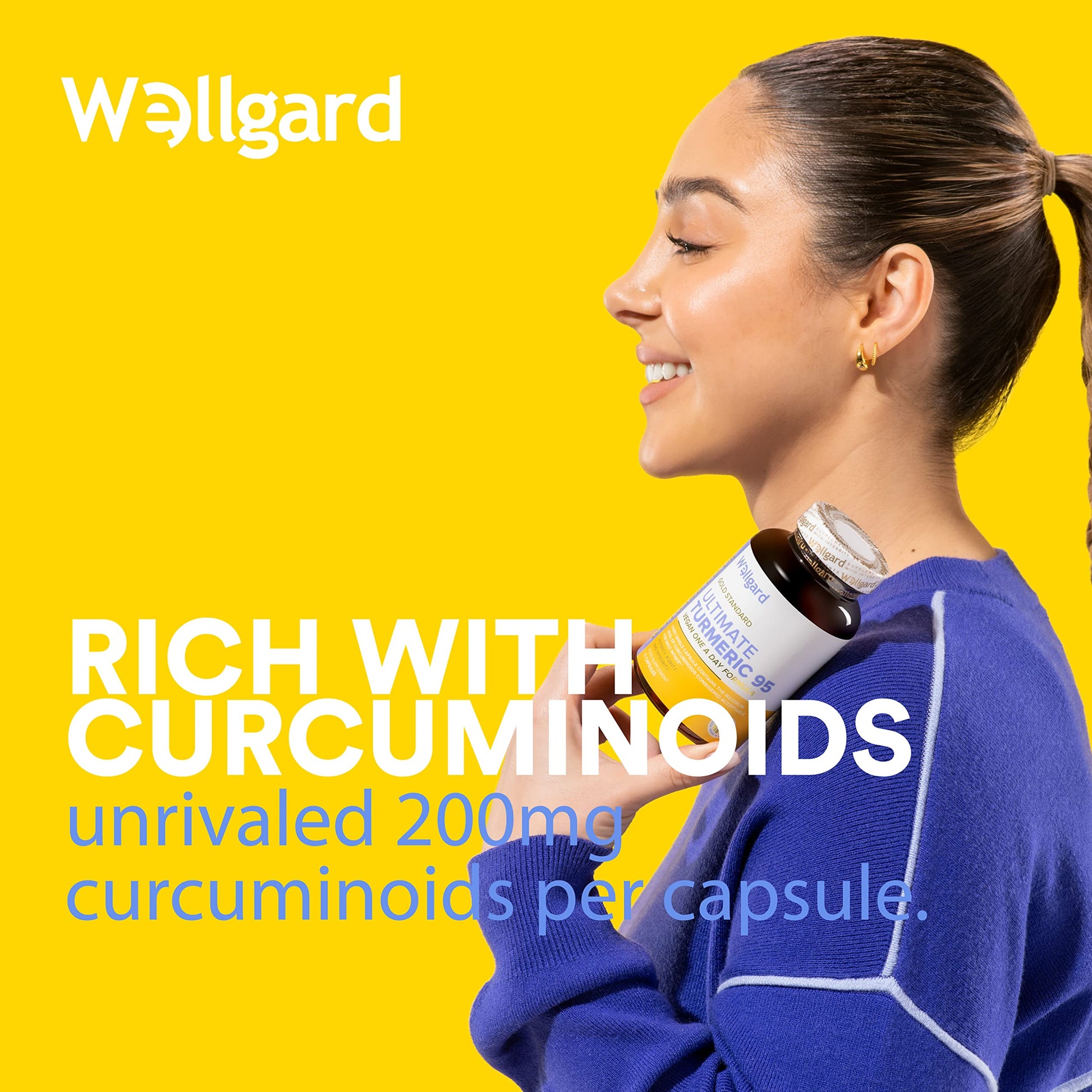 - ★ UNRIVALLED TRANSPARENCY ON CURCUMINOID LEVELS – Not all turmeric supplements are equal, most brands do not quantify the level of Curcuminoids in their products because their formulas contain very low levels of Curcuminoids. Wellgard Ultimate Turmeric 95 contains 200mg of Curcuminoids per capsule – that’s unrivalled potency and transparency!