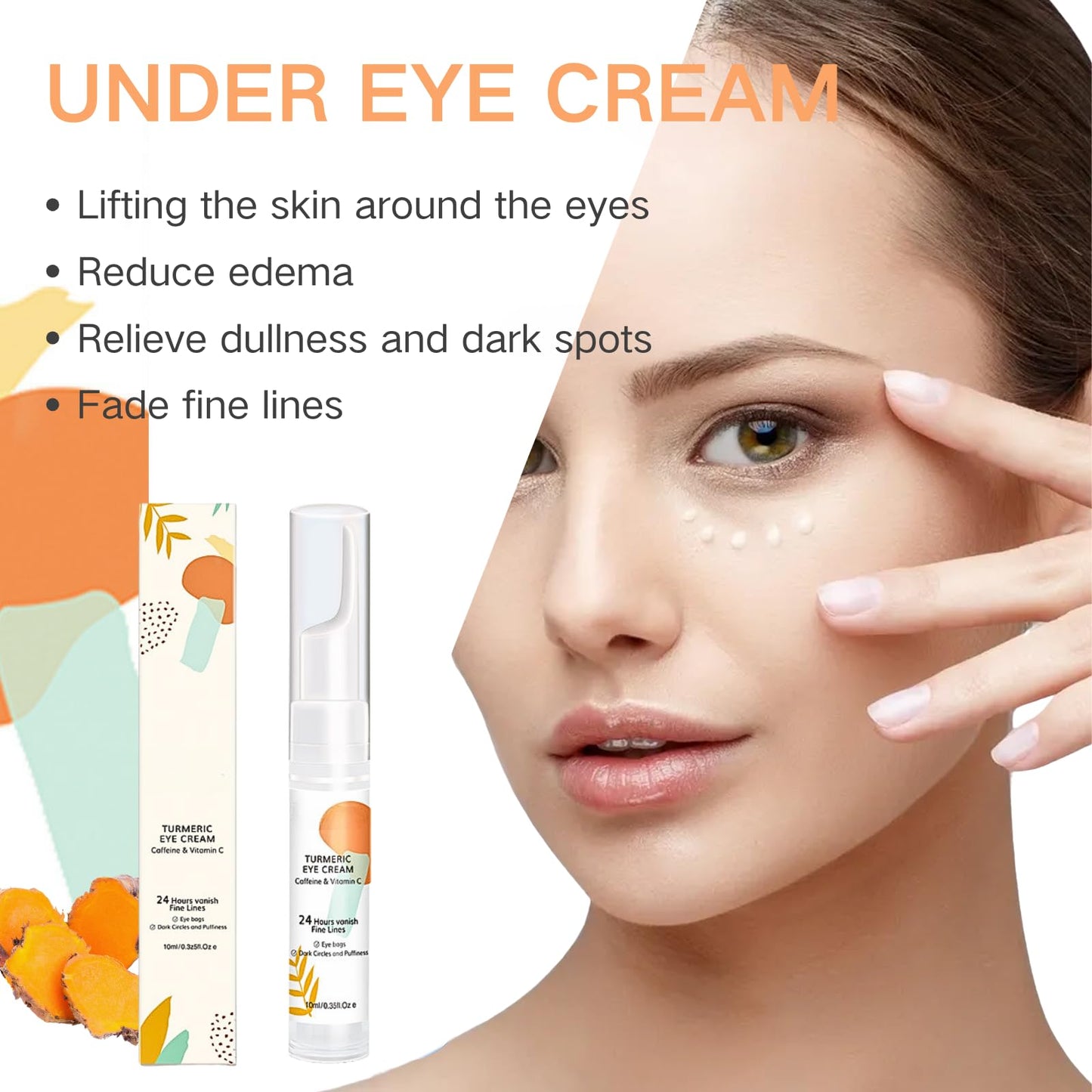 Experience unparalleled care from our turmeric under eye cream. Say goodbye to dark circles and hello to beautiful, youthful eyes.Infused with powerful moisturizing ingredients, this turmeric eye cream penetrates deep into the skin to eliminate dryness and restore moisture, leaving skin feeling soft and supple. Our carefully selected turmeric eye bag cream also fight dark circles and puffiness, helping you create a fresher, brighter look. Thanks to its gentle yet effective formula, this eye cream dark circles is suitable for various skin types, even the most sensitive ones.