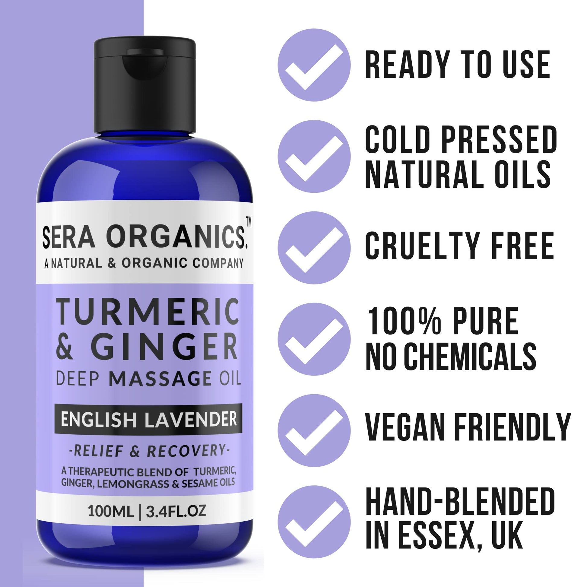 Turmeric & Ginger Massage Oil - Natural Ginger Oil Therapy For Lymphatic Drainage, Nerve, Muscle & Joint Discomfort Relief, Warming Relaxing & Soothing Massage - With Lavender (100ml) By Sera Organics