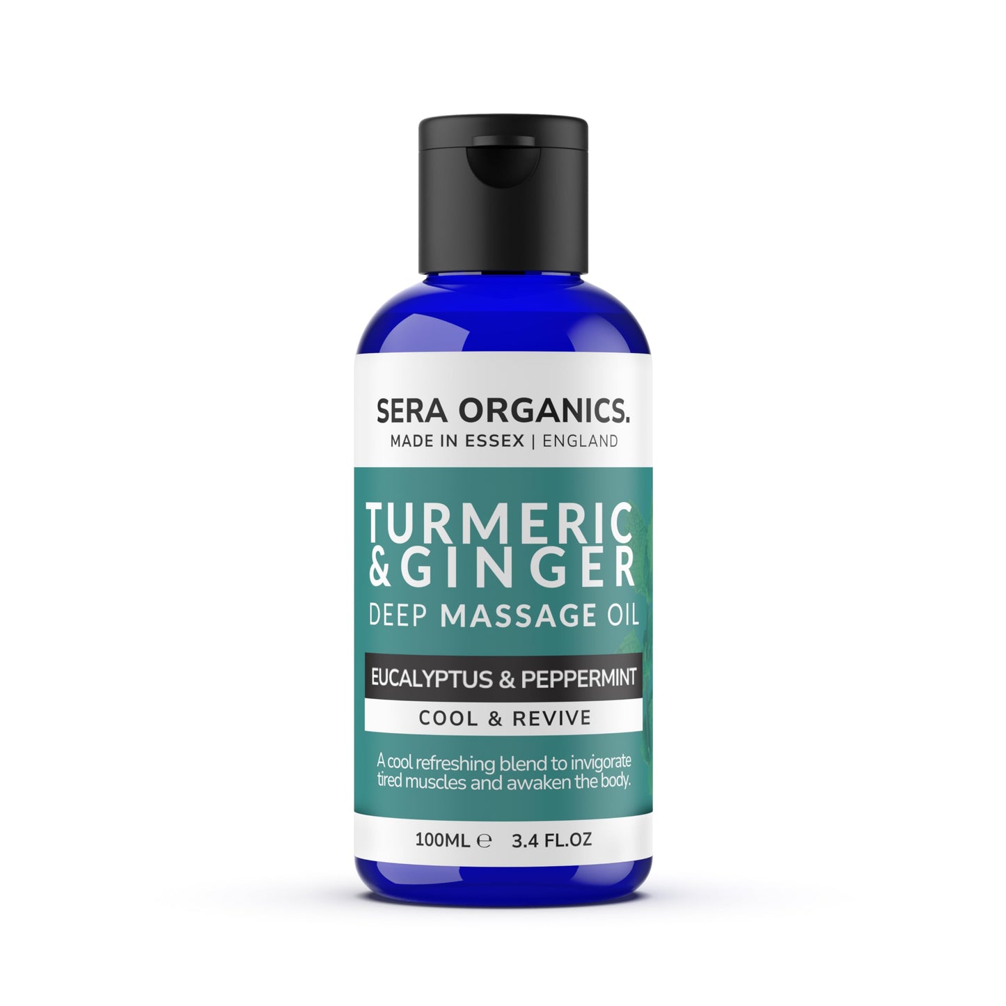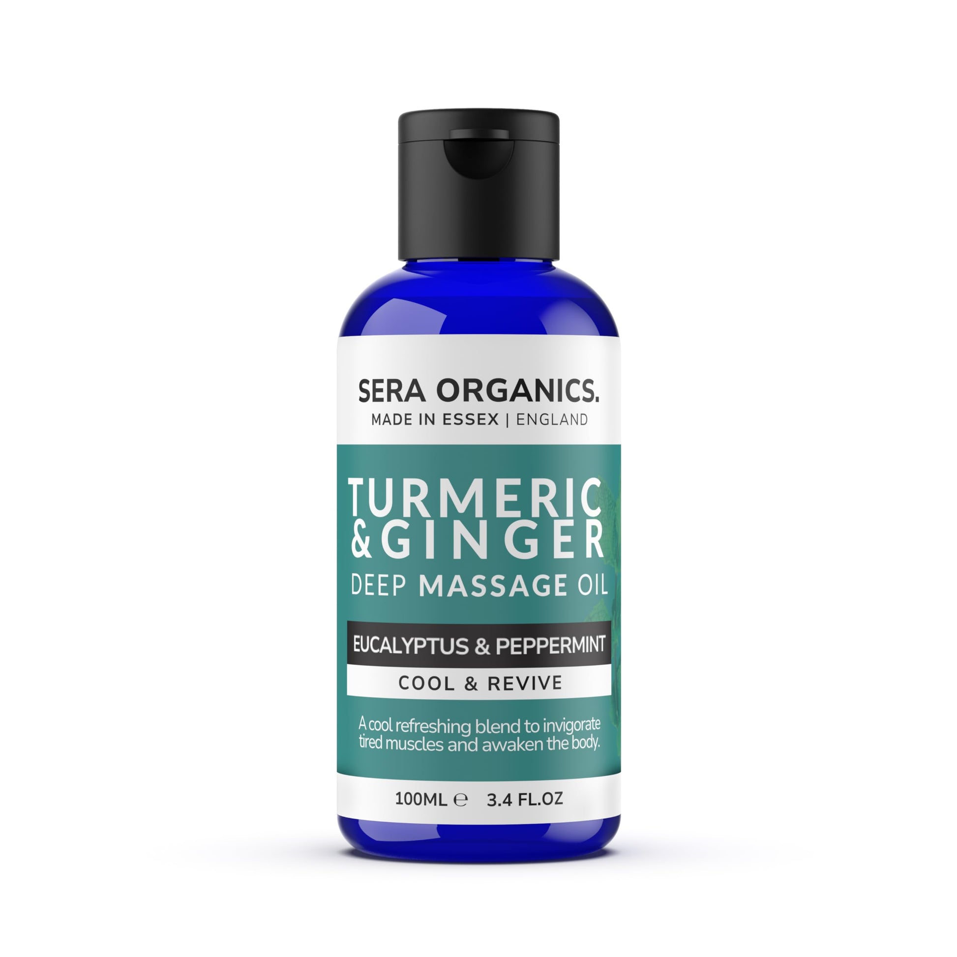 Turmeric Massage Oil – Cooling Body Oil with Eucalyptus & Peppermint │ Post-Workout Recovery & Muscle Fatigue Relief │ Deep Massage Oil for Legs & Back – 100ml by Sera Organics