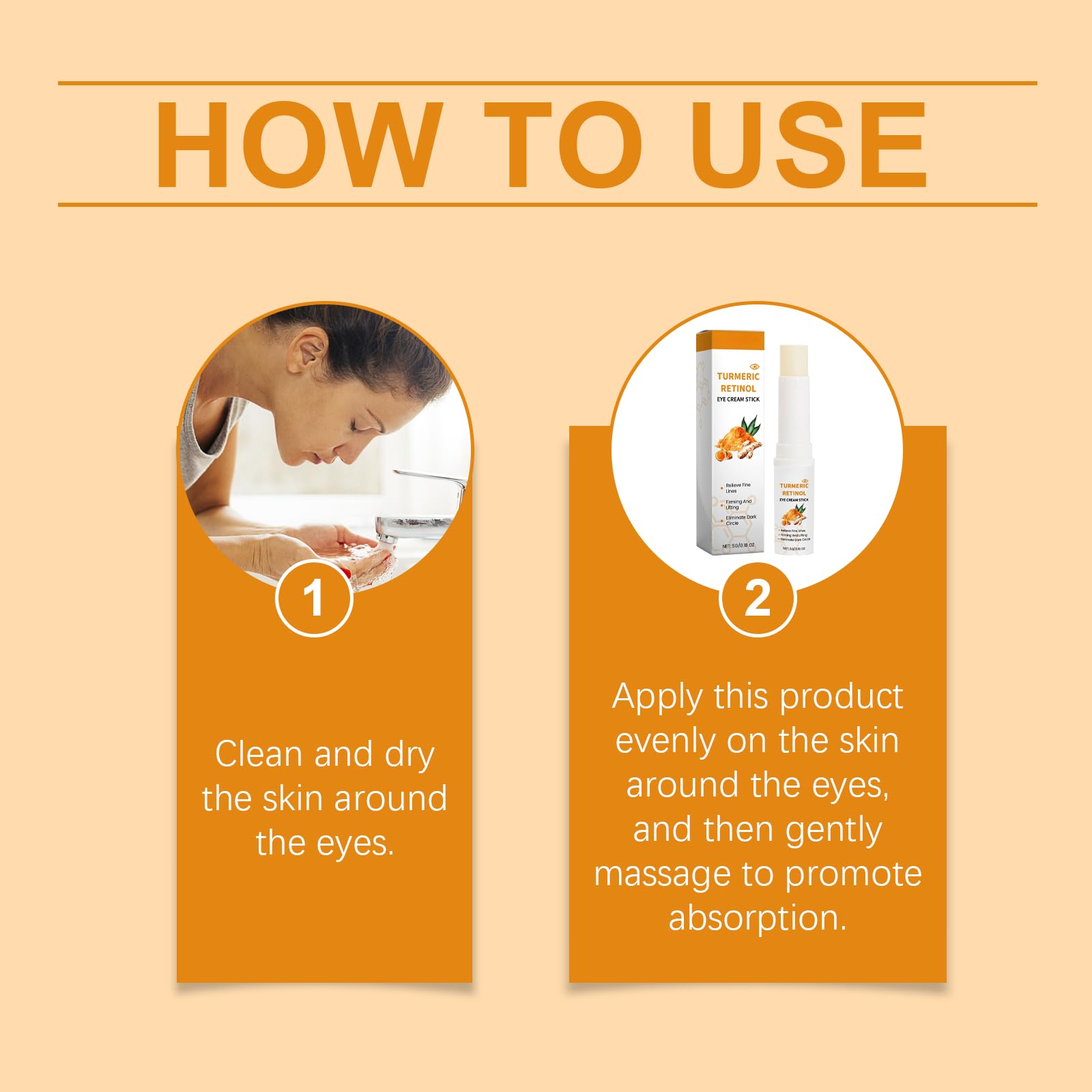 Experience unparalleled care from our Turmeric Retinol Eye Stick. Say goodbye to wrinkles and hello to beautiful, youthful eyes.Infused with powerful moisturizing ingredients, this eye cream dark circles penetrates deep into the skin to eliminate dryness and restore moisture, leaving skin feeling soft and supple. This carefully selected complex eye bags remover men & women also fight wrinkles and fine lines, instant firm eye, helping you create a fresher, brighter look. Thanks to its gentle yet effective formula, this under eye cream dark circles is suitable for various skin types, even the most sensitive ones.