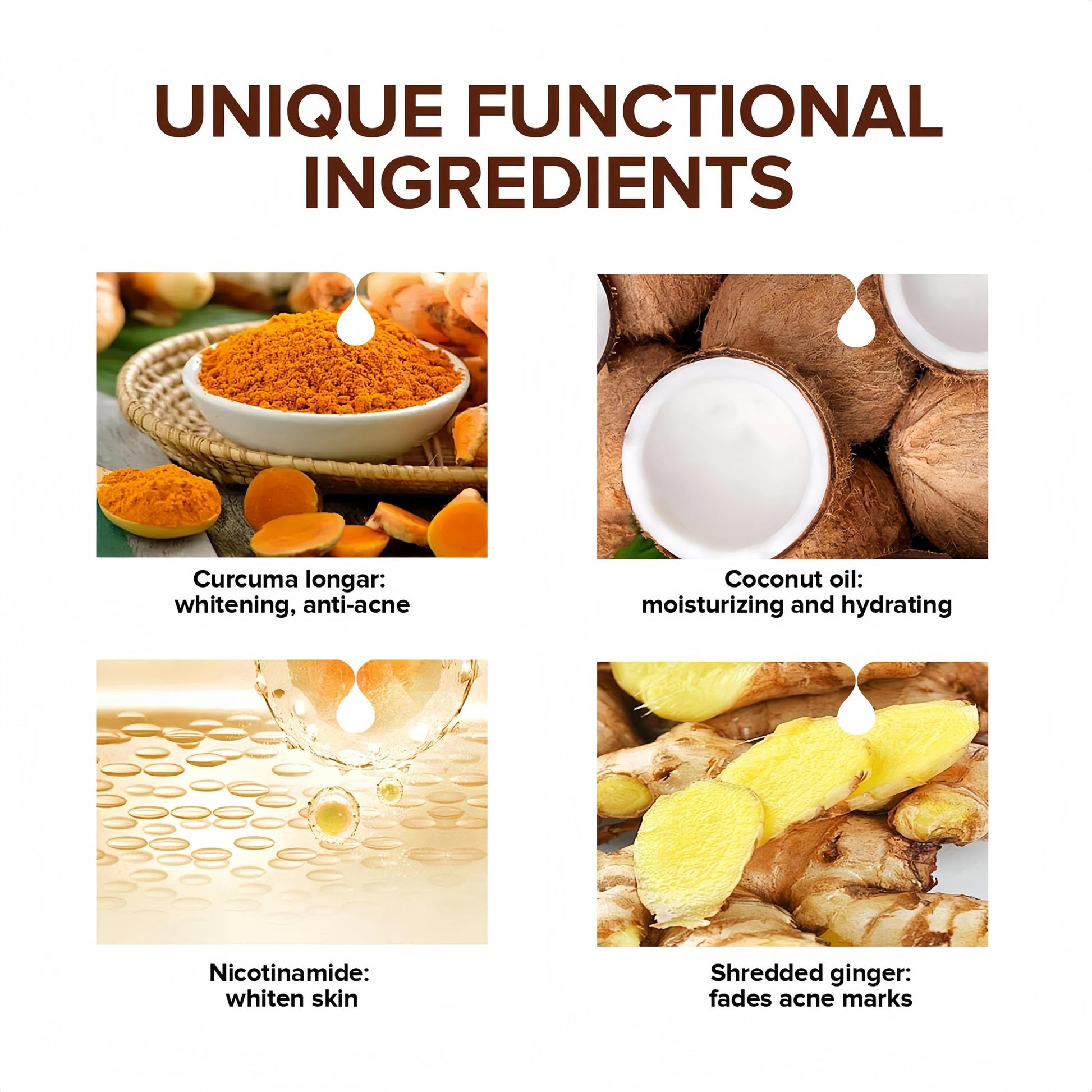 Turmeric is known for its powerful antioxidant and anti-inflammatory properties, promoting glowing and healthy skin. The addition of Kojic Acid helps to even out skin tone, reduce the appearance of dark spots, and rejuvenate tired skin.