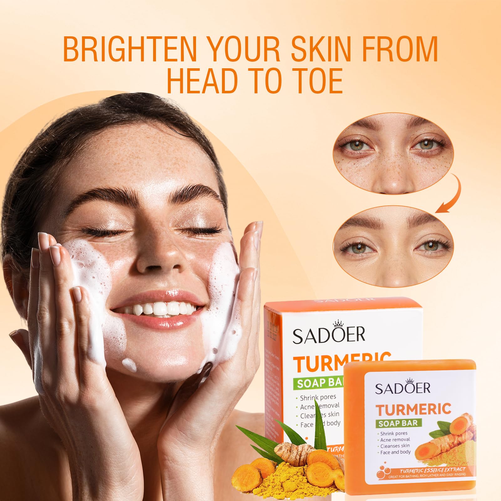 Turmeric Soap Natural Turmeric Soap Bar For Acne Removal,Pores Shrink,Deep Cleaning Moisturizing Erase Fine Lines,Firming