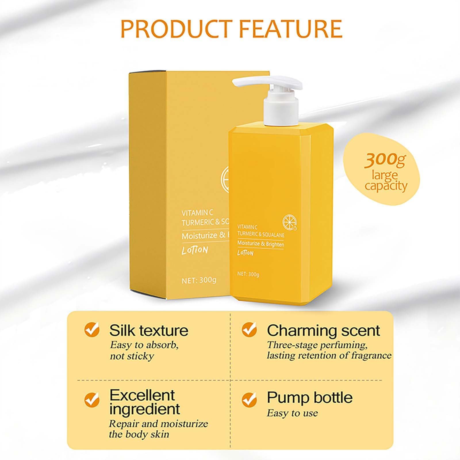 Turmeric & Vitamin C Body Lotion - Large Moisturizer with Squalane, Targets Dark Spots, Hydrates Dry Skin, Improves Skin Tone, All-Day Protection, 300g
