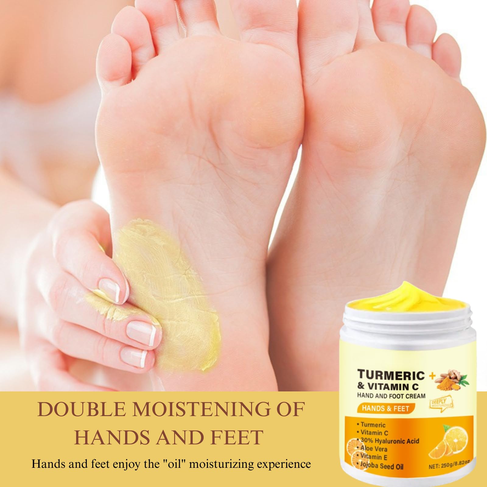Turmeric&Vitamin C Foot&Hand Cream for Cracked Heels and Dry Skin-30% Hyaluronic Acid Hand Cream for Very Dry Feet&Hands,Hard Skin Remover,Intensive Moisturising for Cracked Skin for Women&Men,250g